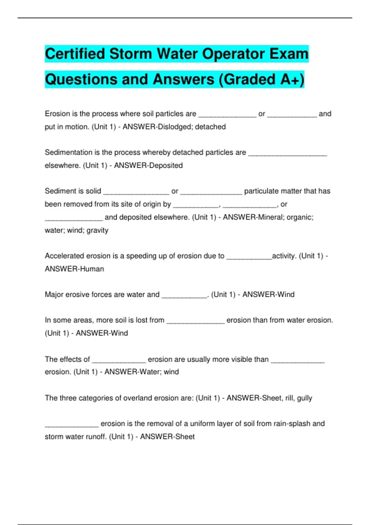 storm water runoff. (Unit 1) - ANSWER-Sheet