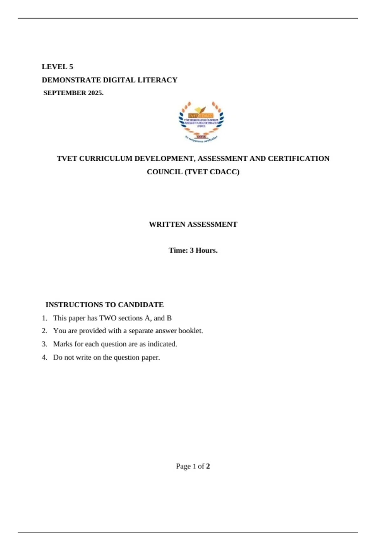 TVET CURRICULUM DEVELOPMENT, ASSESSMENT AND CERTIFICATION