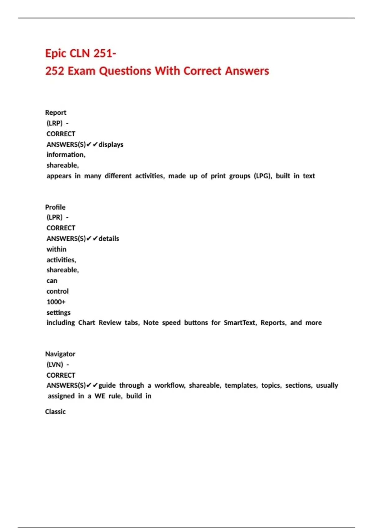 Epic CLN 251-252 Exam Questions With Correct Answers