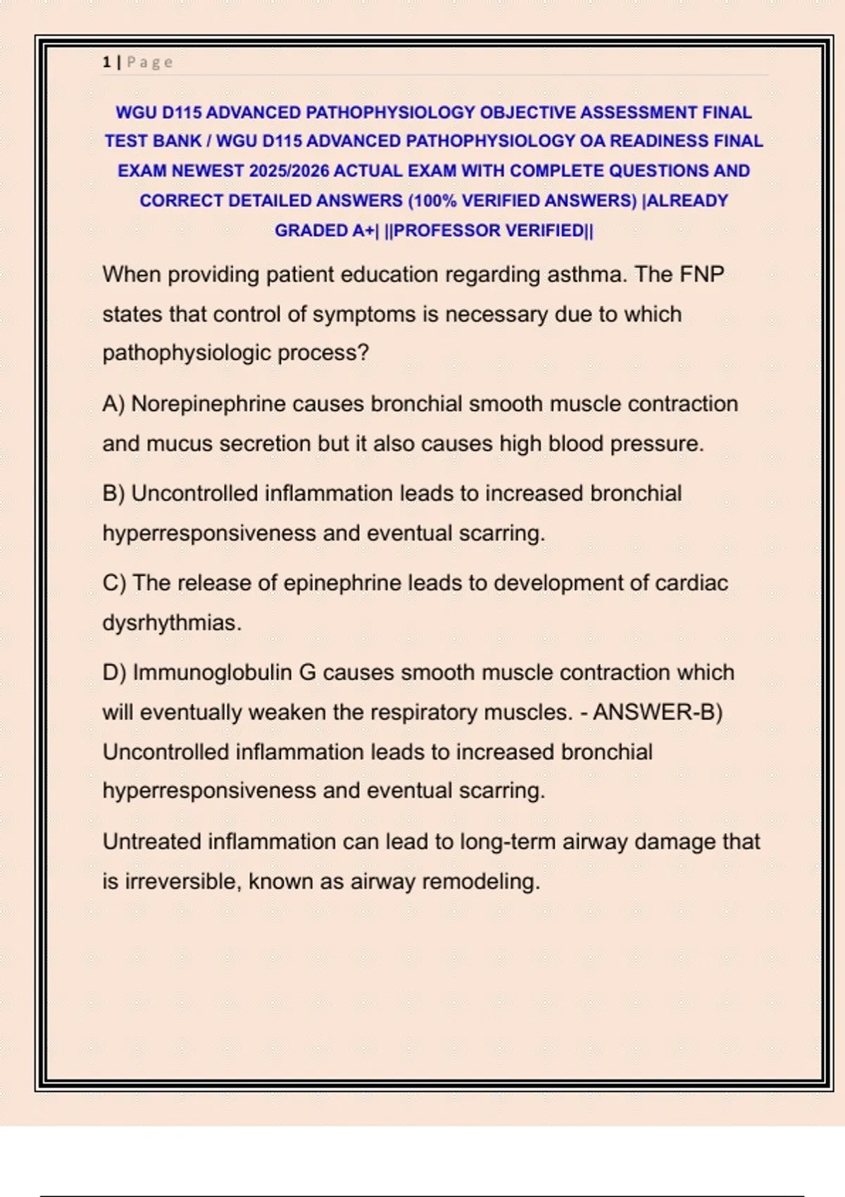 WGU D115 ADVANCED PATHOPHYSIOLOGY OBJECTIVE ASSESSMENT FINAL