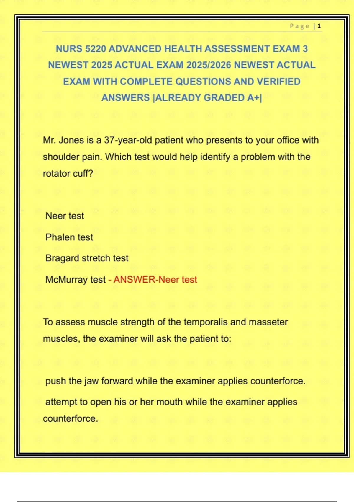 NURS 5220 ADVANCED HEALTH ASSESSMENT EXAM 3 NEWEST 2025 ACTUAL EXAM 2025/2026 NEWEST ACTUAL EXAM WITH COMPLETE QUESTIONS AND VERIFIED ANSWERS |ALREADY GRADED A+|
