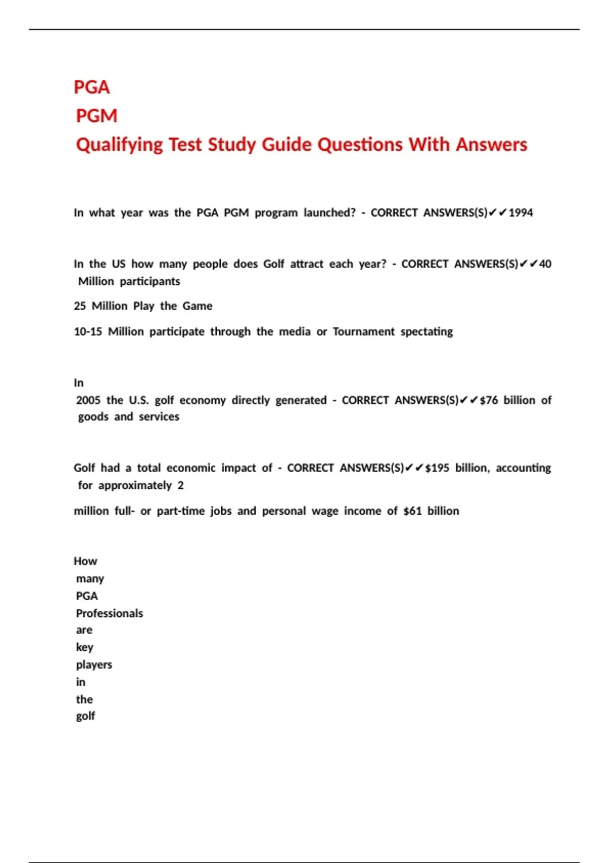 /Golf //- //CORRECT //ANSWERS(S)✔✔Manages //the //total //golf //operation //of //a //PGA //Recognized