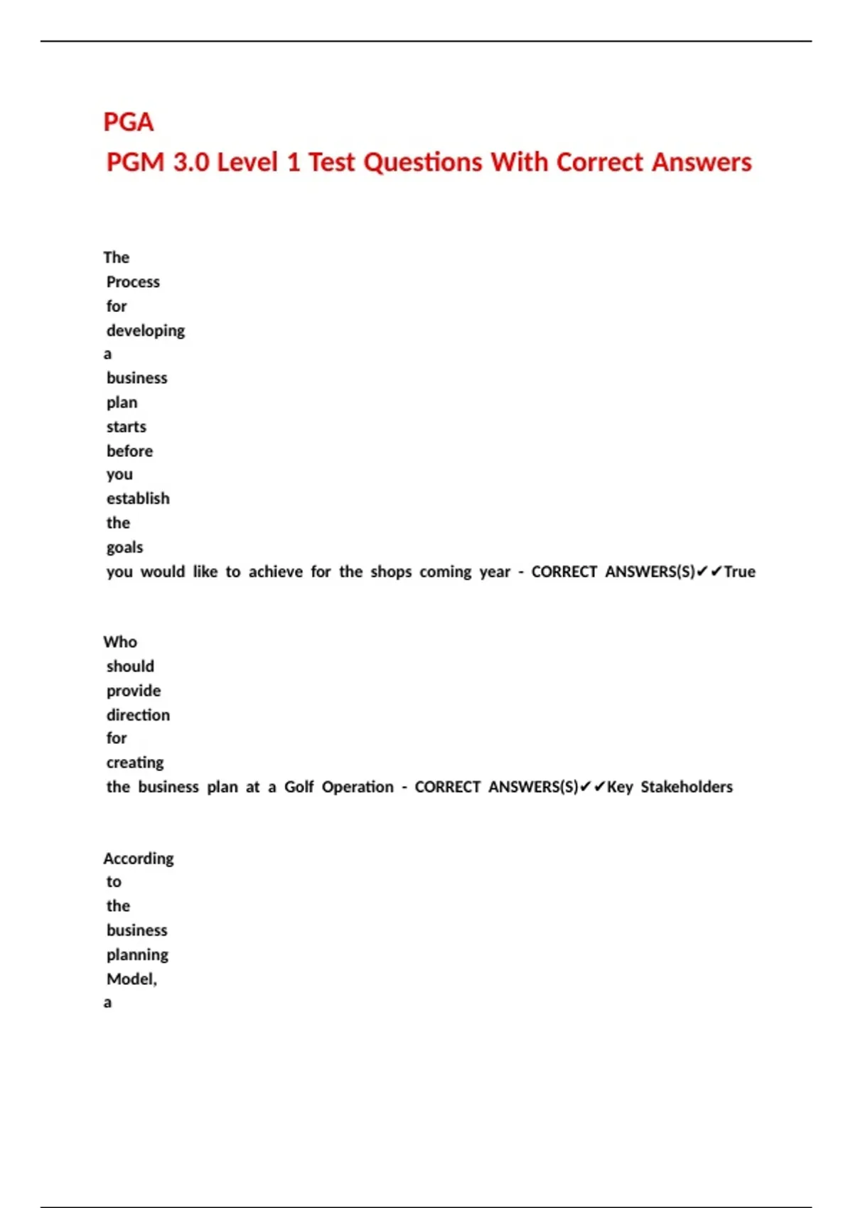 PGM 3.0 Level 1 Test Questions With Correct Answers