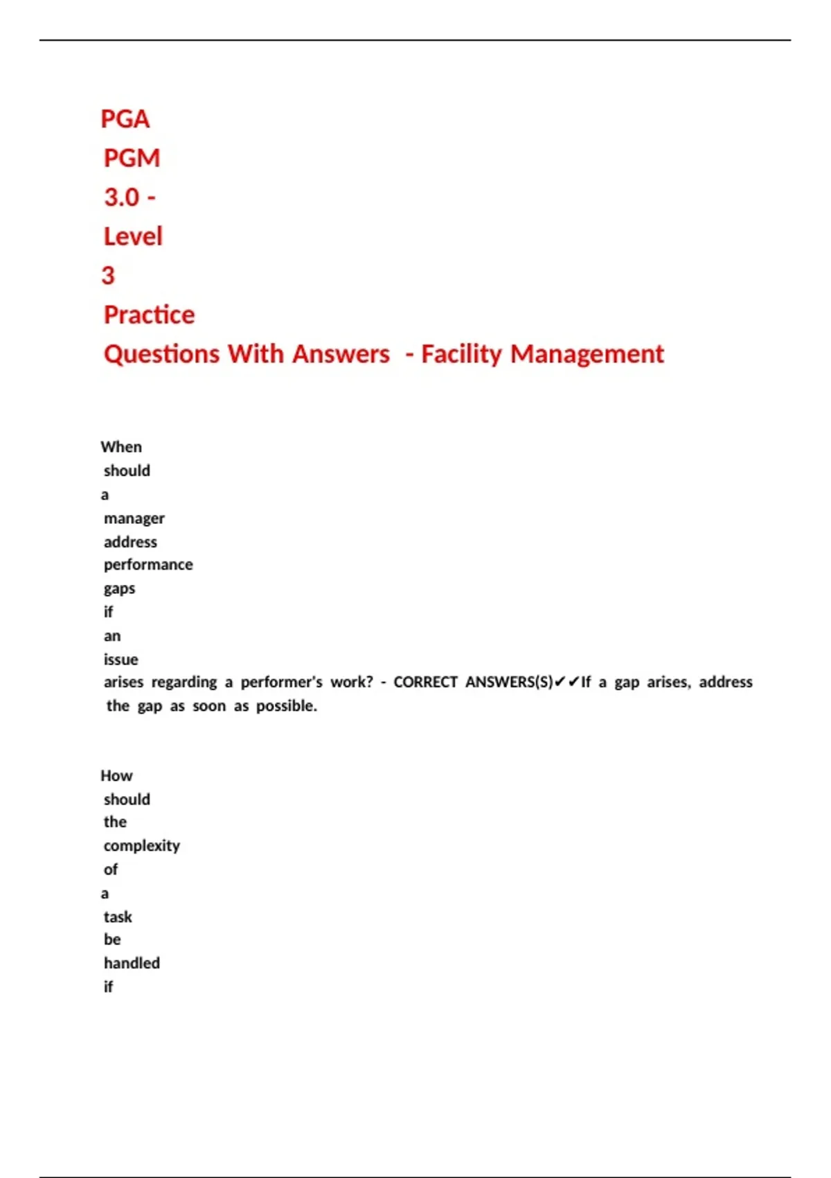 PGA PGM 3.0 - Level 3 Practice Questions With Answers - Facility Management