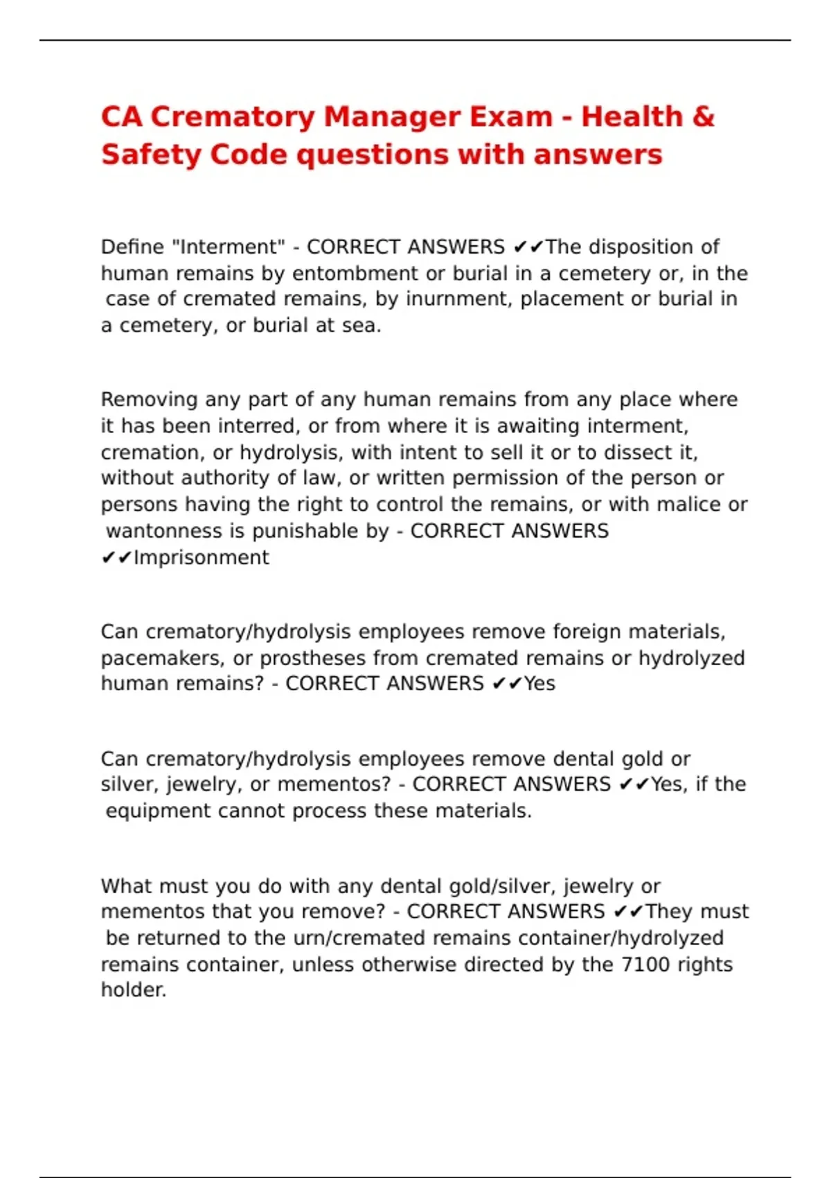 Define "Interment" - CORRECT ANSWERS ✔✔The disposition of
