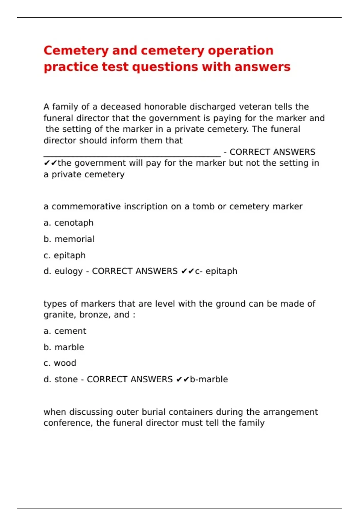 CORRECT ANSWERS ✔✔d- regulations of the cemetery