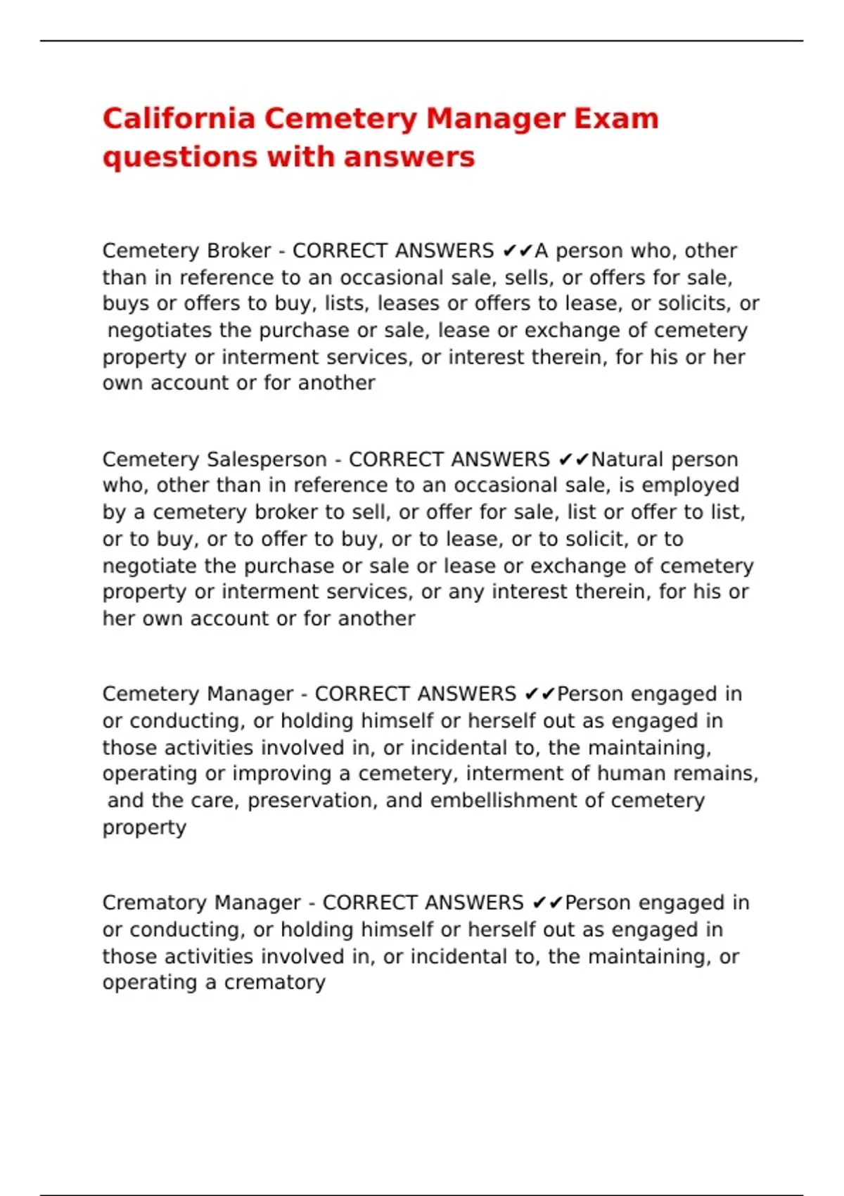 ,Cemetery Licensee - CORRECT ANSWERS ✔✔Any cemetery |\ |\ |\ |\ |\ |\ |\