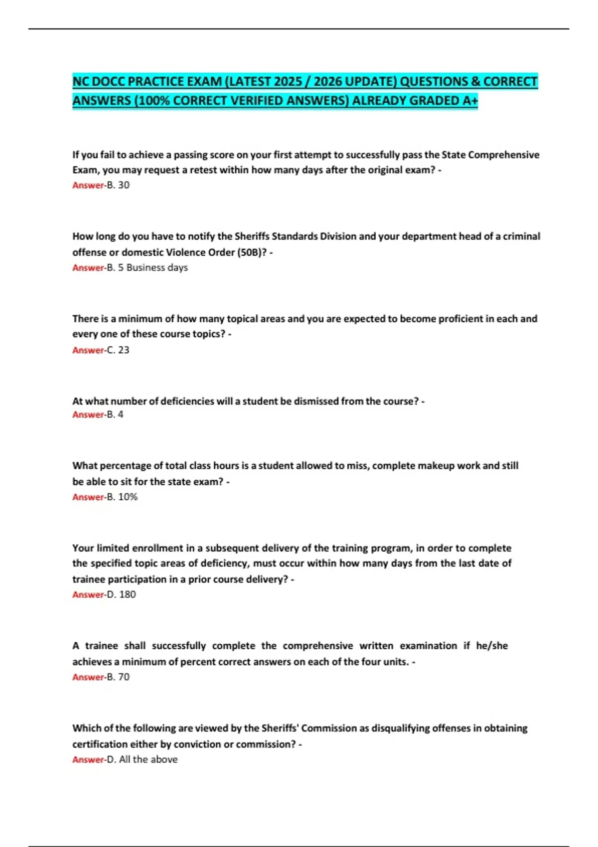 ANSWERS (100% CORRECT VERIFIED ANSWERS) ALREADY GRADED A+