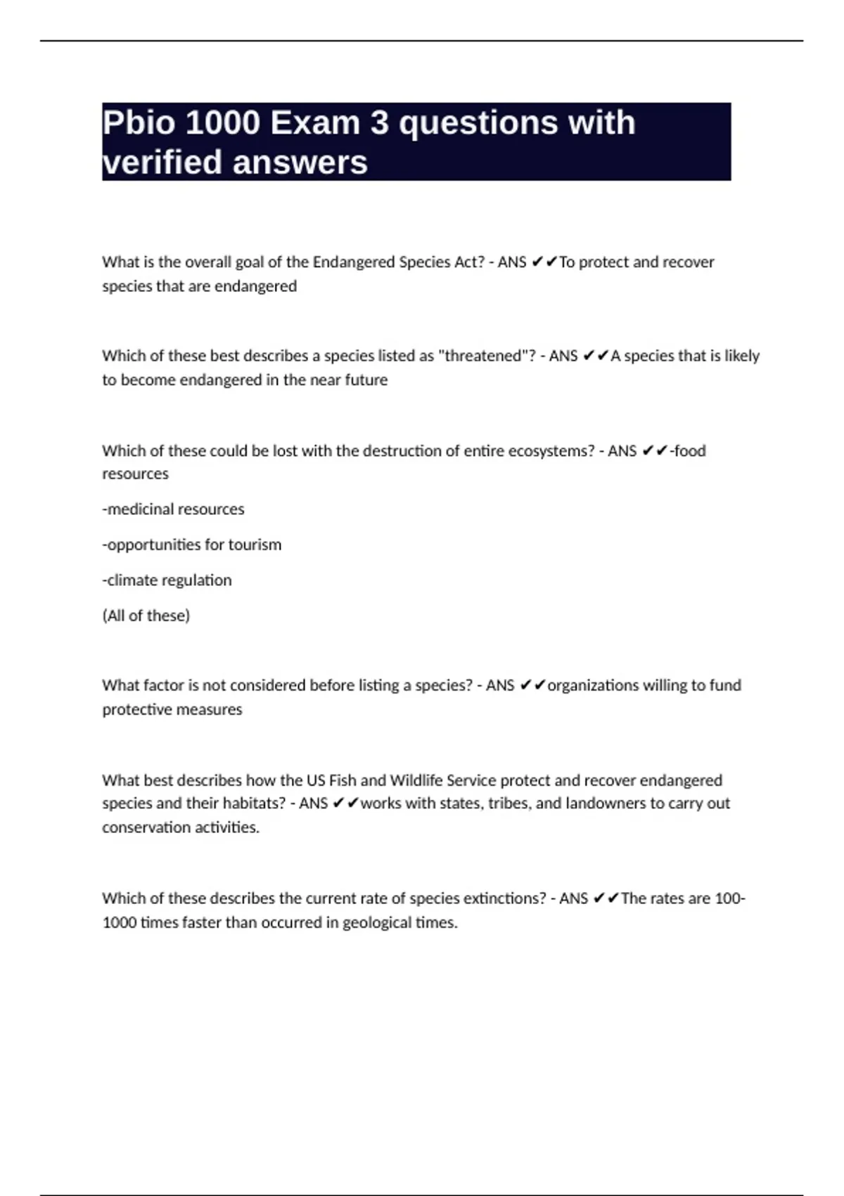 Which of these best describes a species listed as "threatened"? - ANS ✔✔A species that is likely