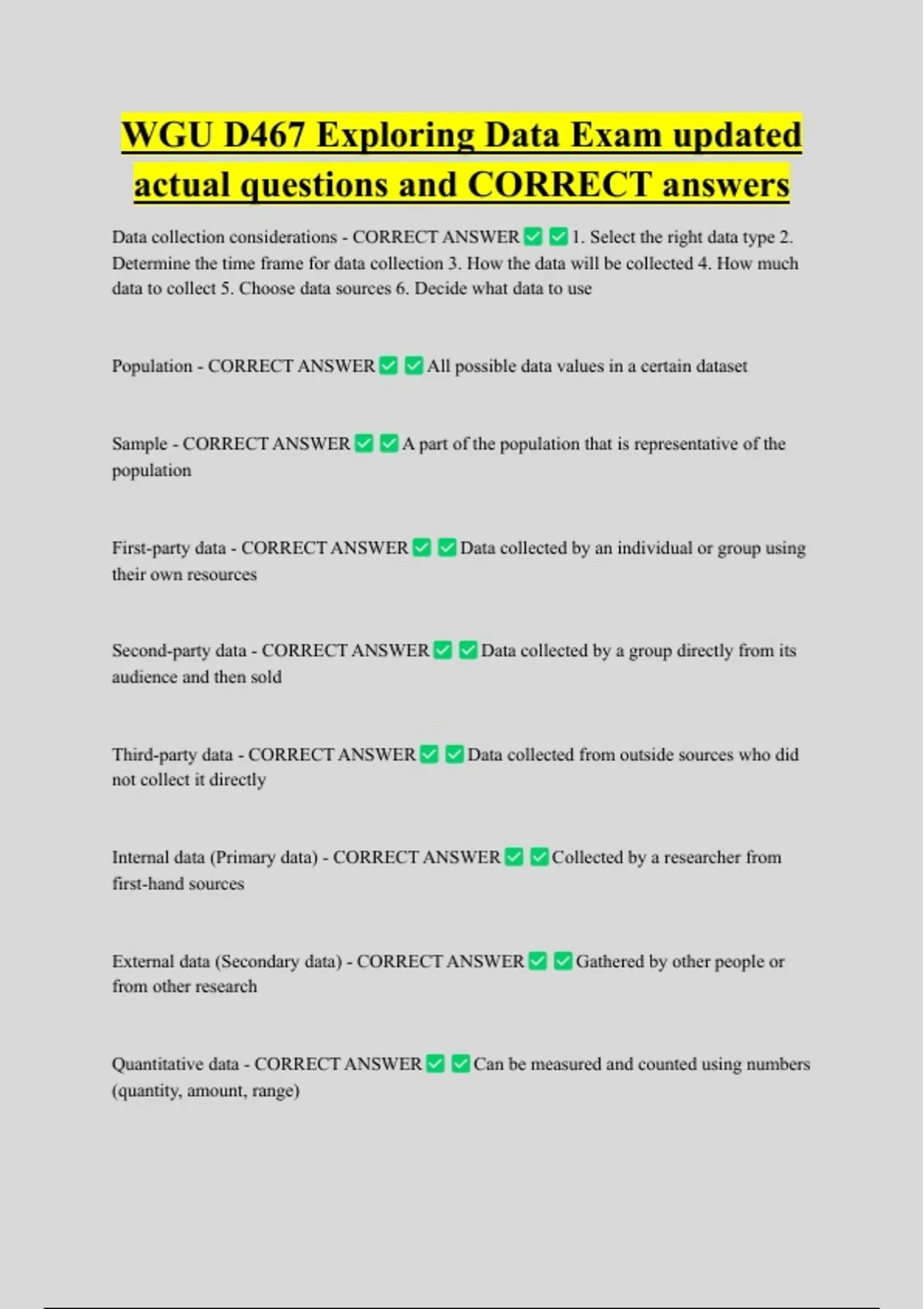 Internal data (Primary data) - CORRECT ANSWER Collected by a researcher from