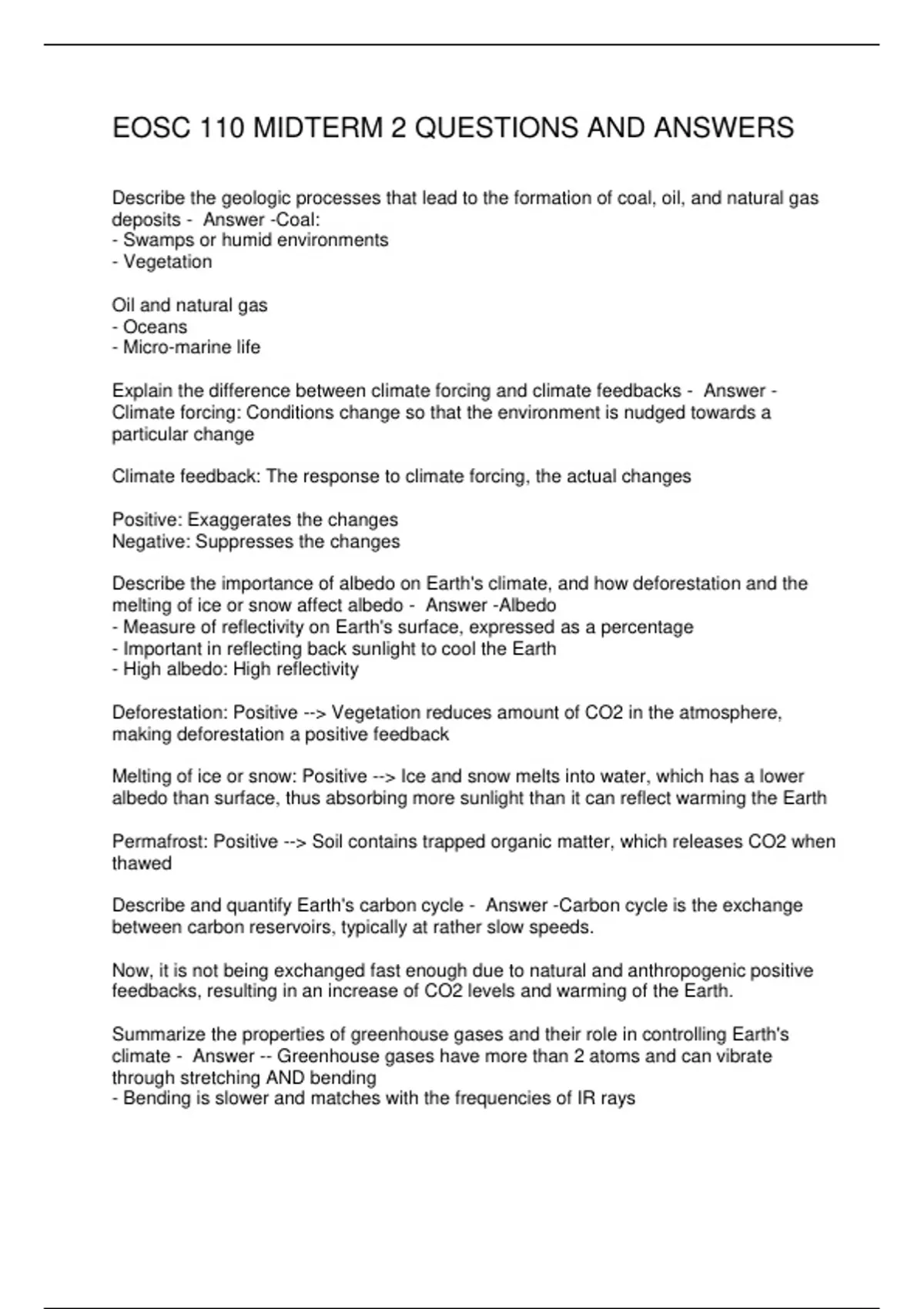 EOSC 110 MIDTERM 2 QUESTIONS AND ANSWERS