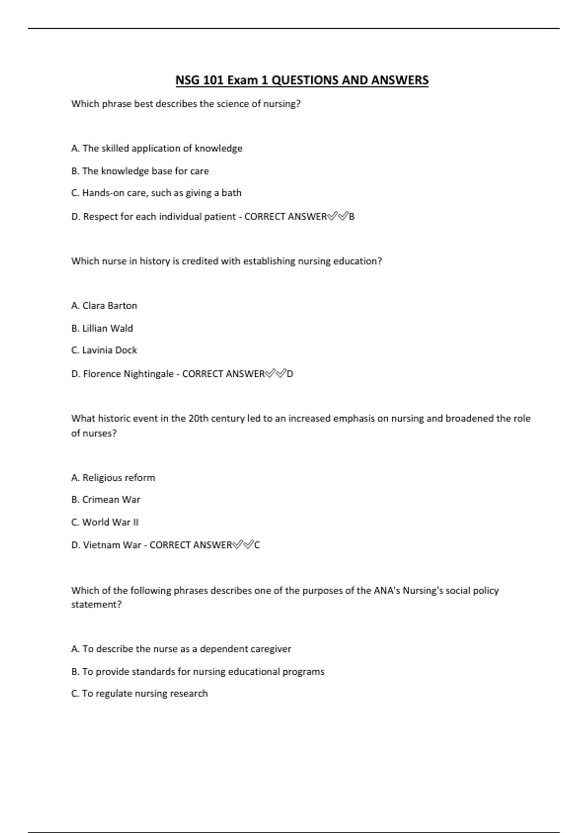 , D. To describe nursing's values and social responsibility - CORRECT ANSWER✅✅D