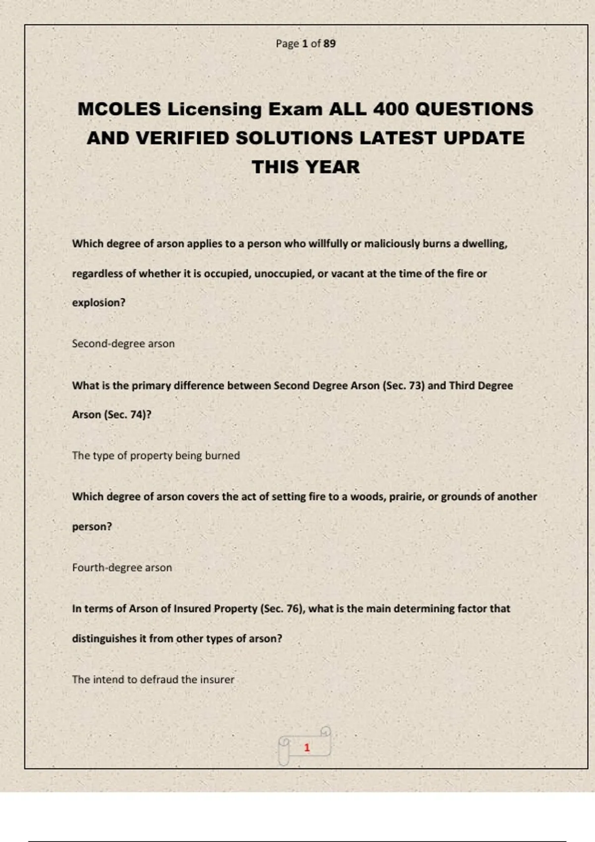 MCOLES Licensing Exam ALL 400 QUESTIONS AND VERIFIED SOLUTIONS LATEST UPDATE THIS YEAR