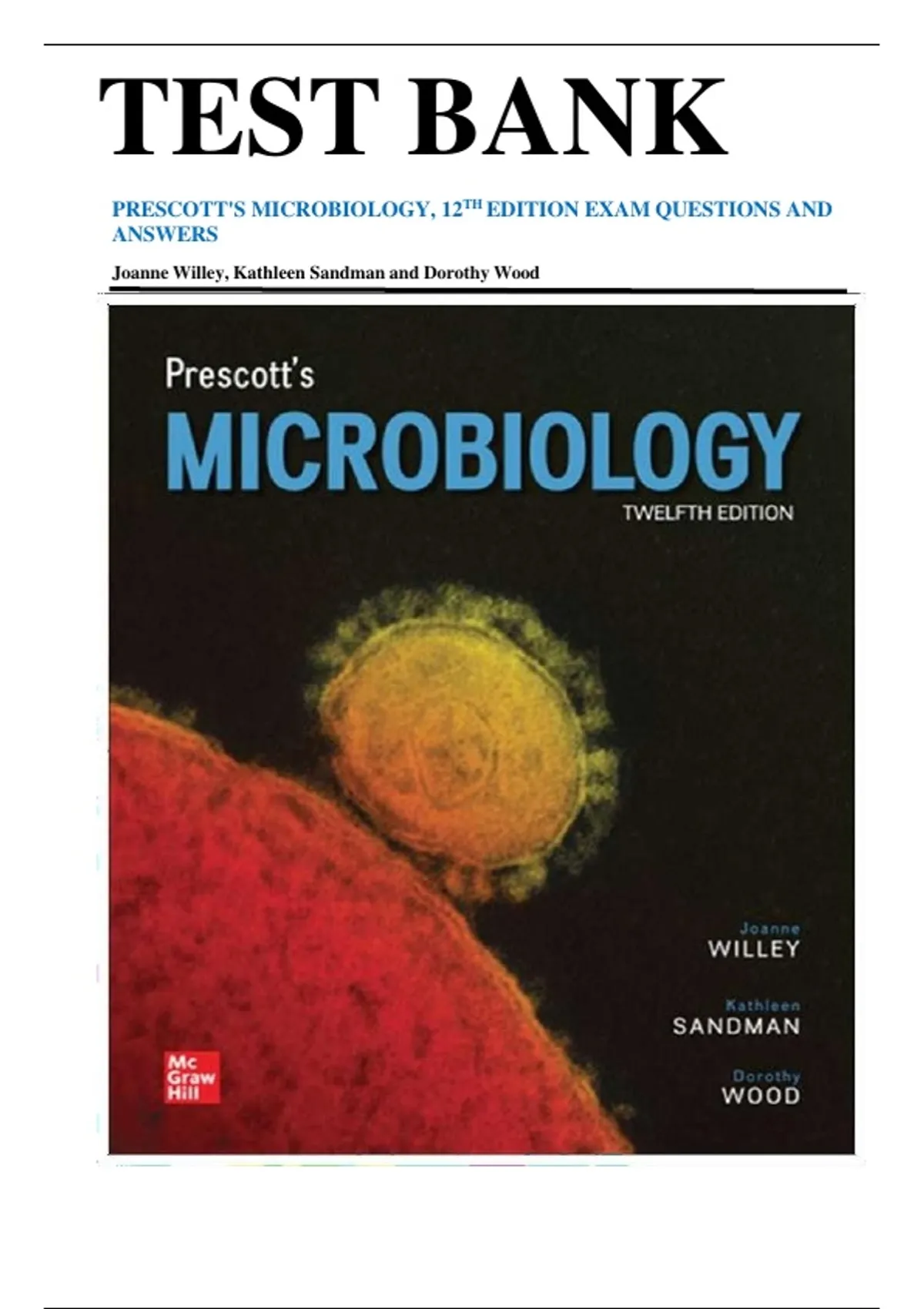 ,Test Bank for Prescott's Microbiology, 12th Edition by Joanne Willey