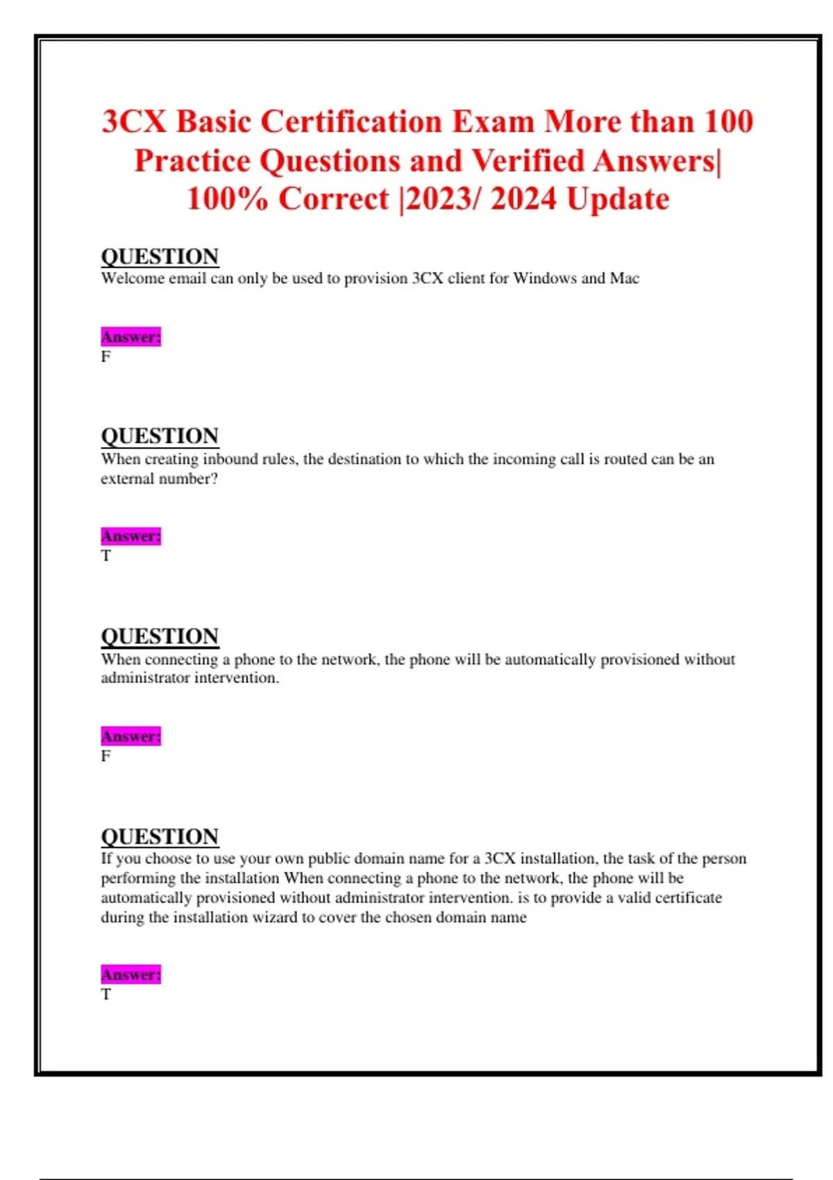 Practice Questions and Verified Answers|