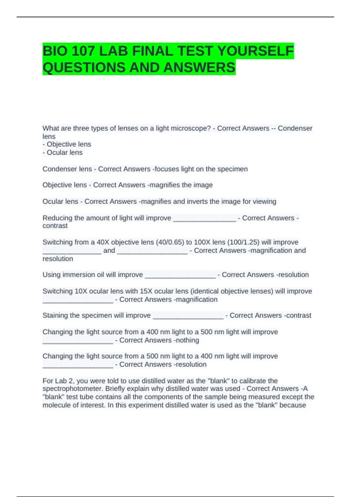 would be present in the tube at the end of the lab? - Correct Answers -It would contain