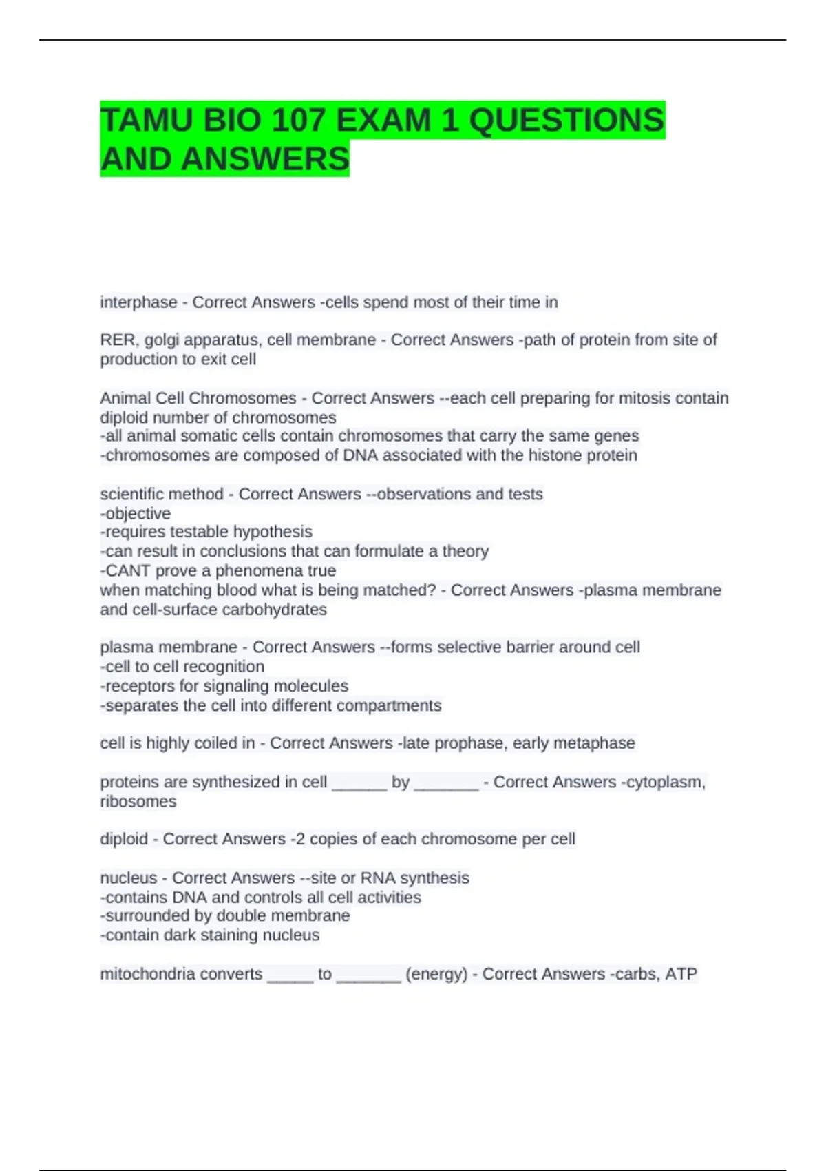 TAMU BIO 107 EXAM 1 QUESTIONS