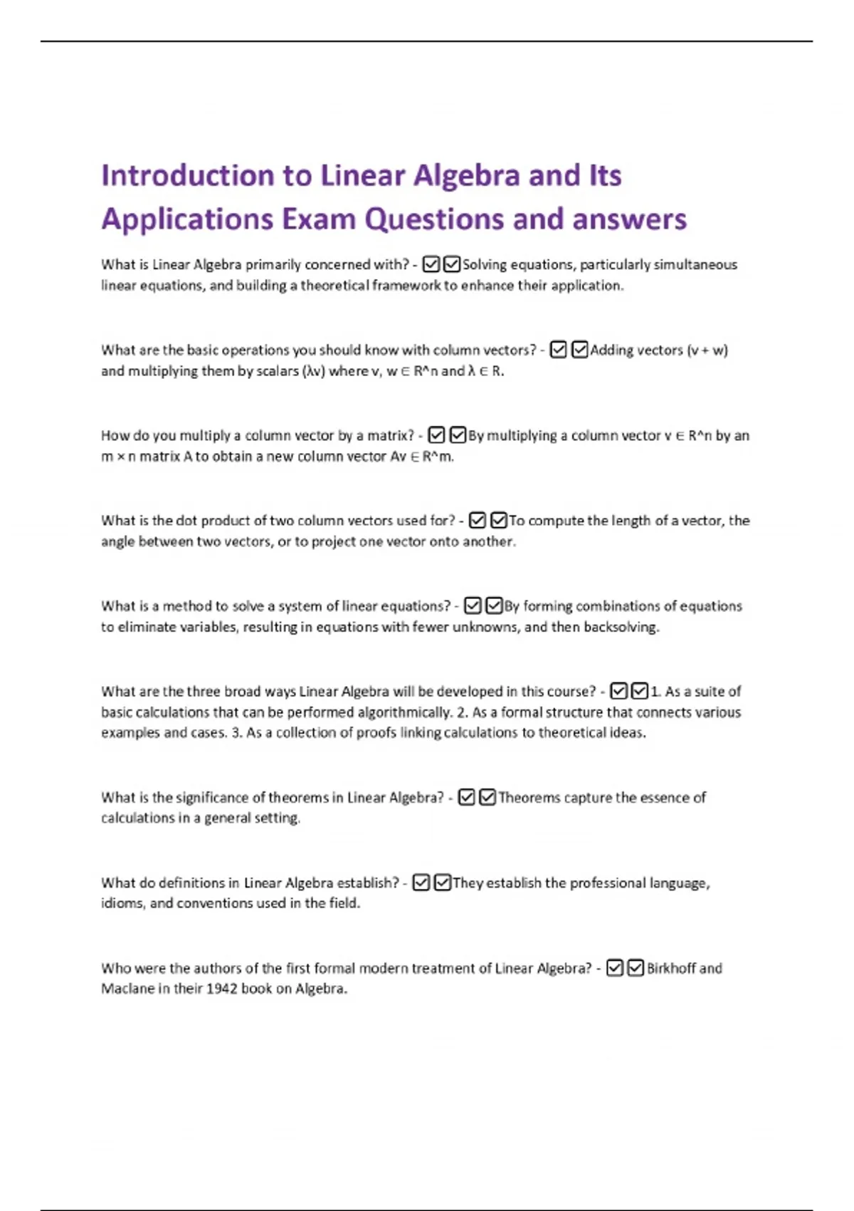 Introduction to Linear Algebra and Its Applications Exam Questions and answers