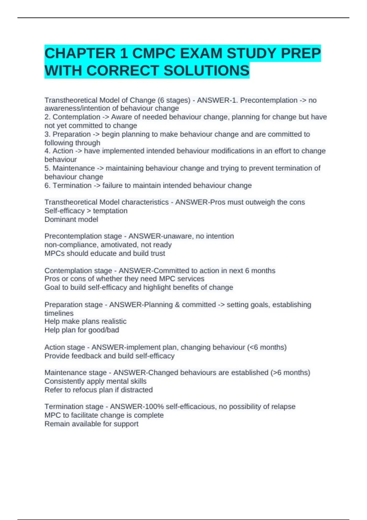 Transtheoretical Model of Change (6 stages) - ANSWER-1. Precontemplation -> no