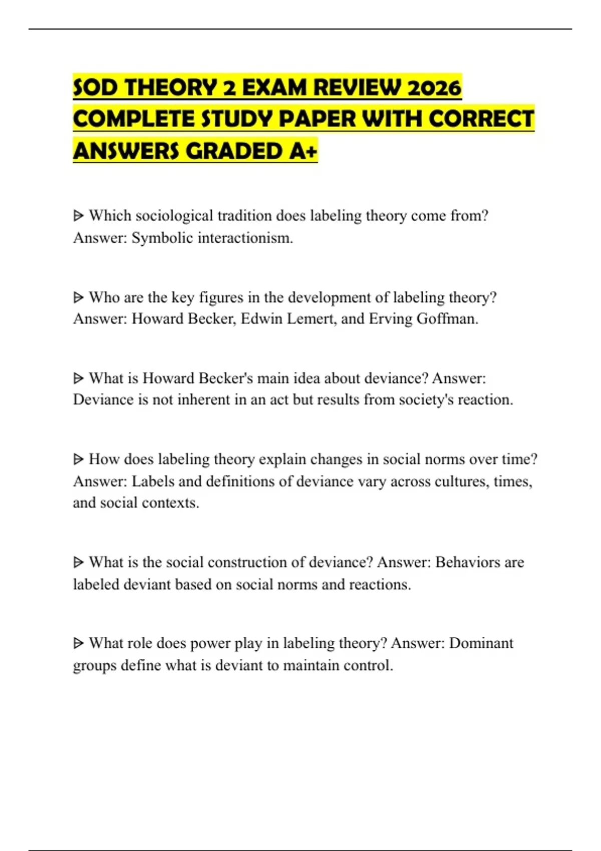 SOD THEORY 2 EXAM REVIEW 2026 COMPLETE STUDY PAPER WITH CORRECT ANSWERS GRADED A+