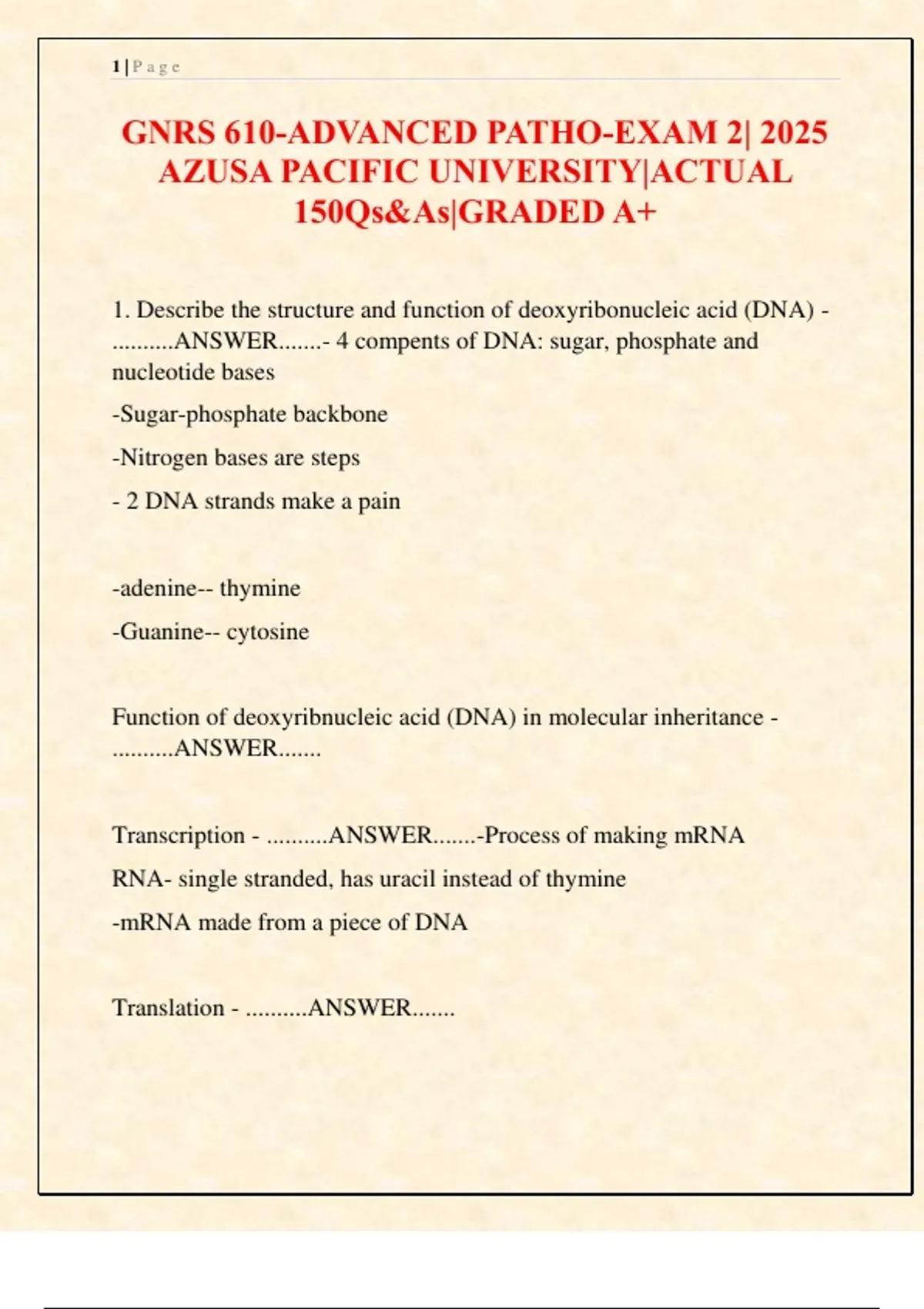 GNRS 610-ADVANCED PATHO-EXAM 2| 2025
