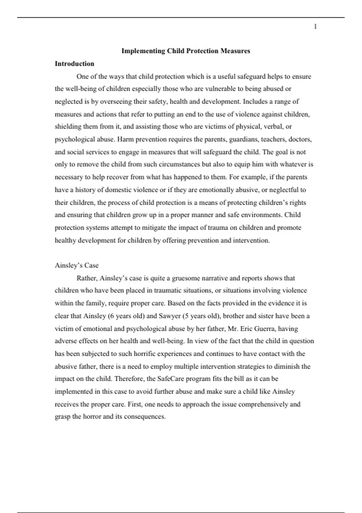 implemented in this case to avoid further abuse and make sure a child like Ainsley