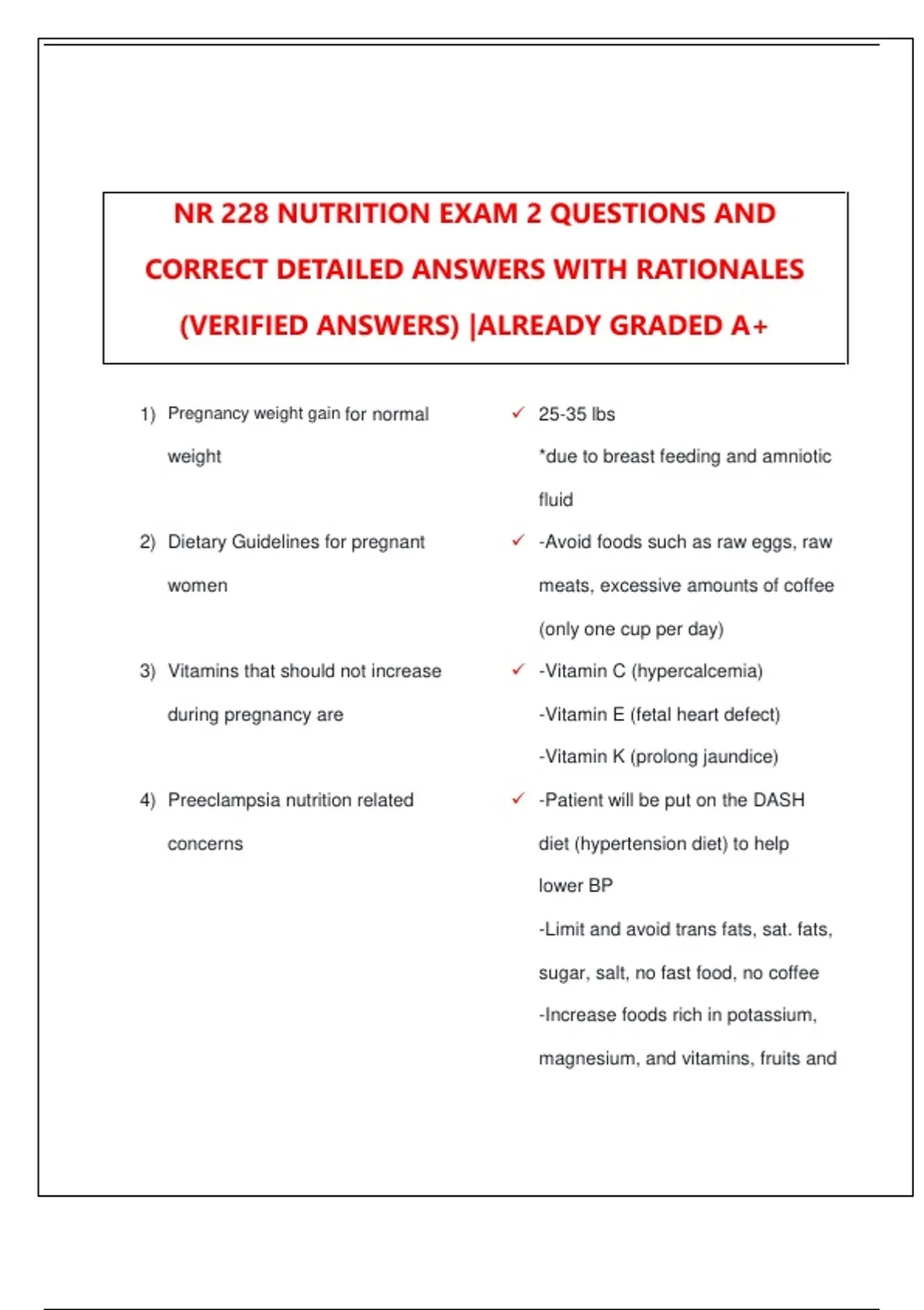 NR 228 NUTRITION EXAM 2 QUESTIONS AND CORRECT DETAILED ANSWERS WITH RATIONALES (VERIFIED ANSWERS) |ALREADY GRADED A+