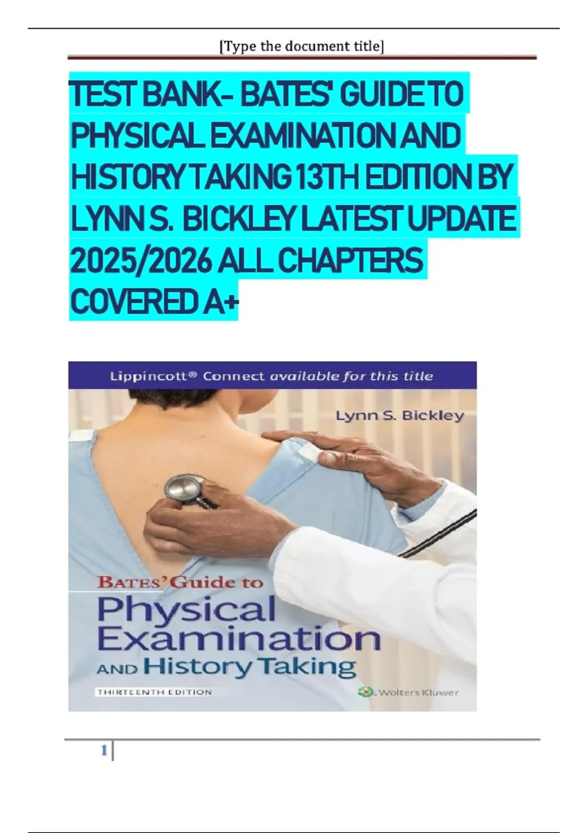 Test Bank: Bates' Guide to Physical Examination and History Taking 13th Edition (Latest Update)