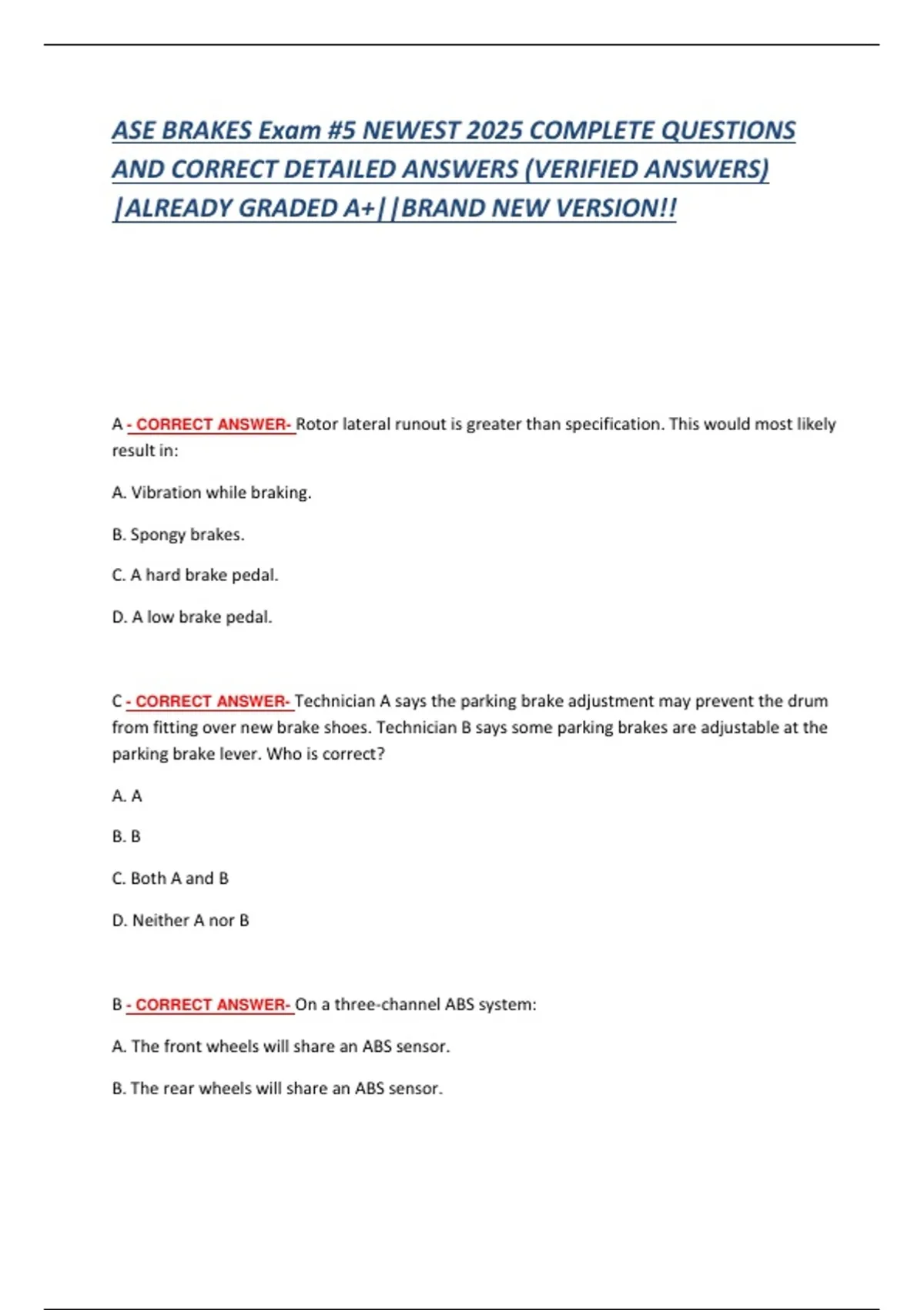B - CORRECT ANSWER- On a three-channel ABS system: