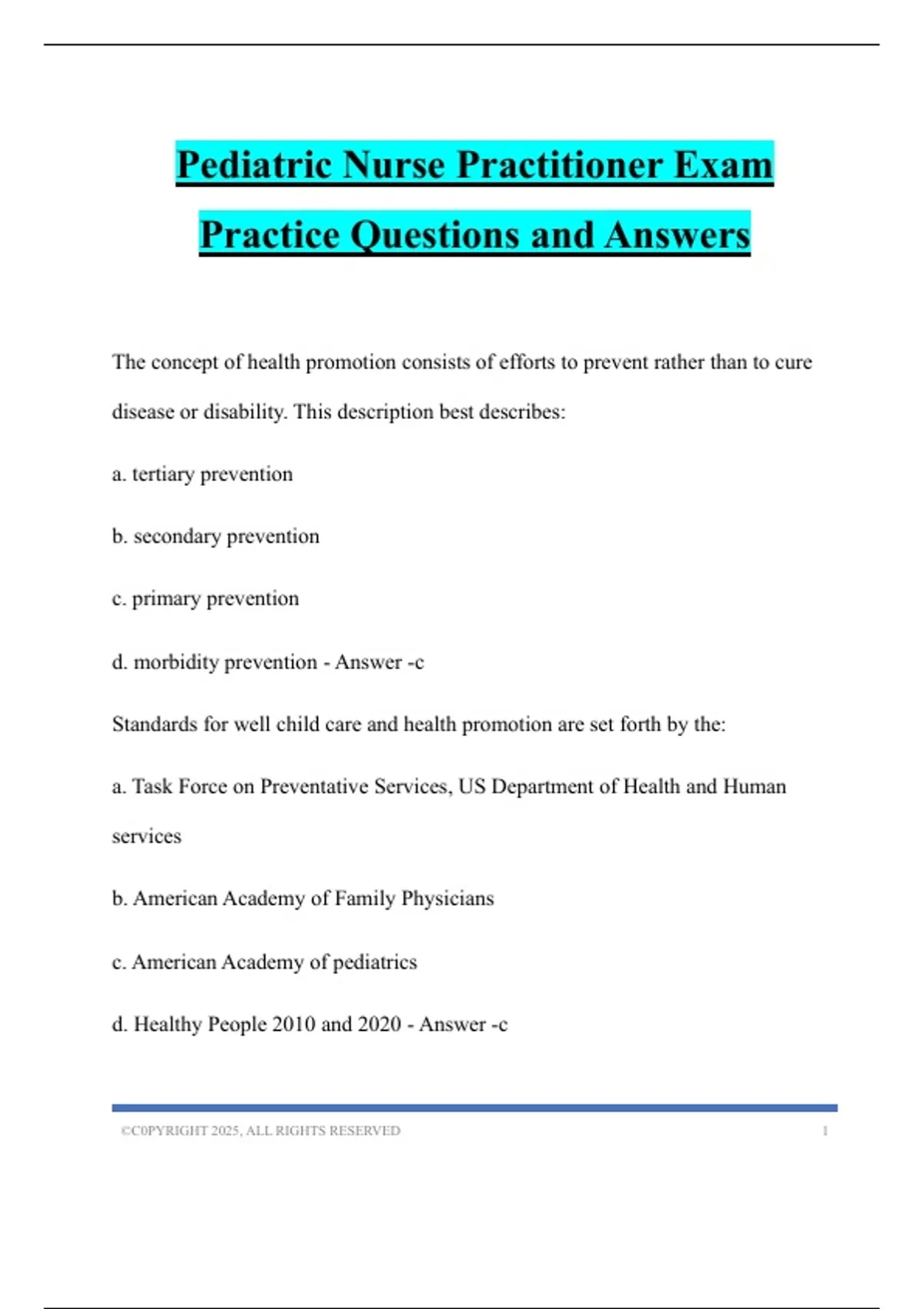 d. Healthy People 2010 and 2020 - Answer -c