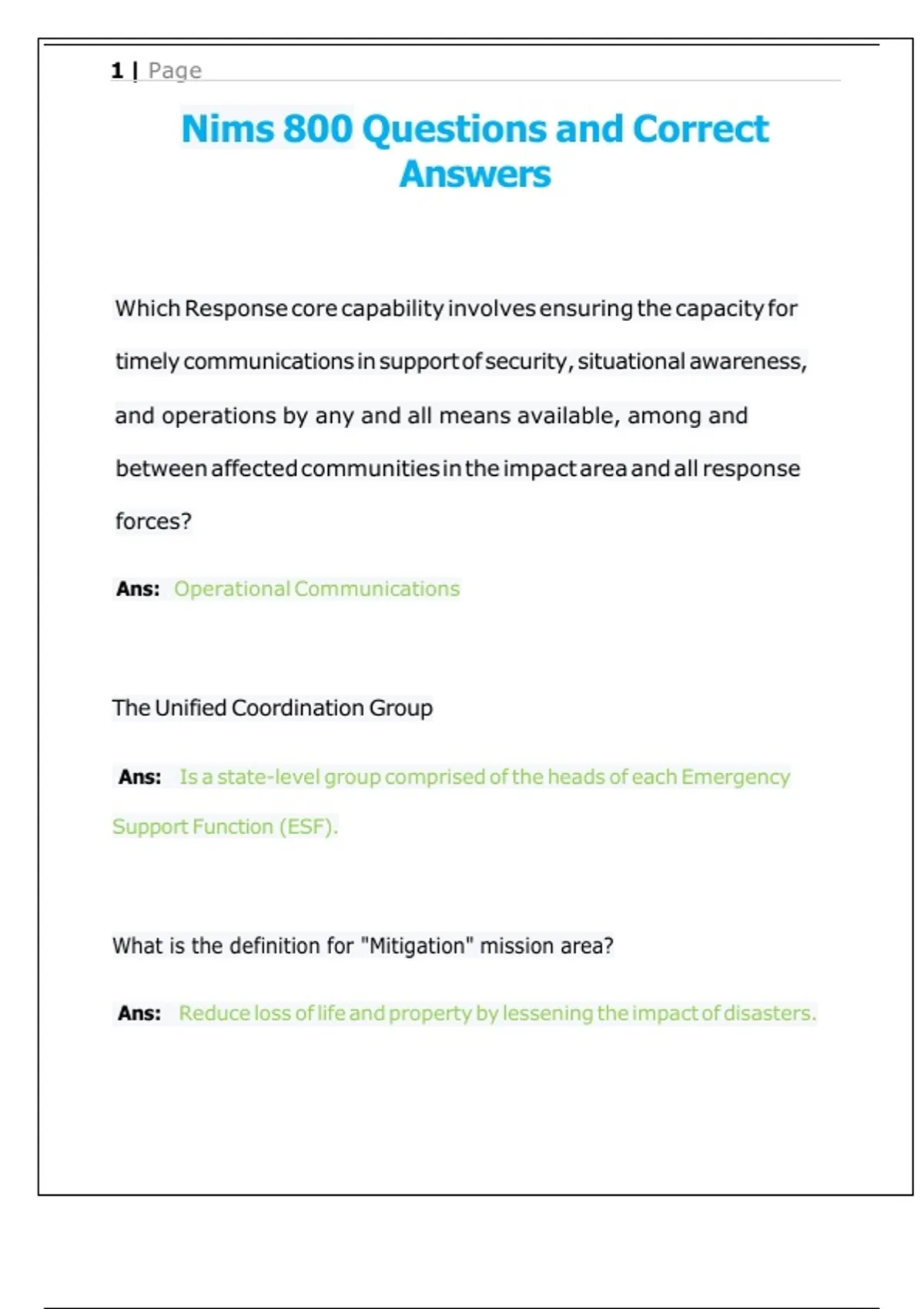 Nims 800 Questions and Correct