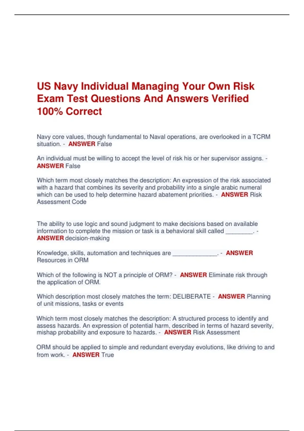 Which of the following is NOT a principle of ORM? - ANSWER Eliminate risk through