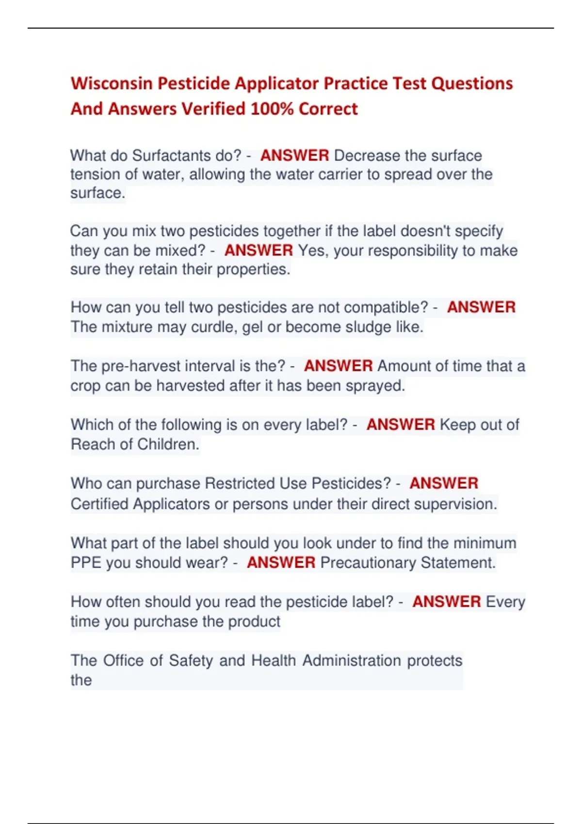 The pre-harvest interval is the? - ANSWER Amount of time that a