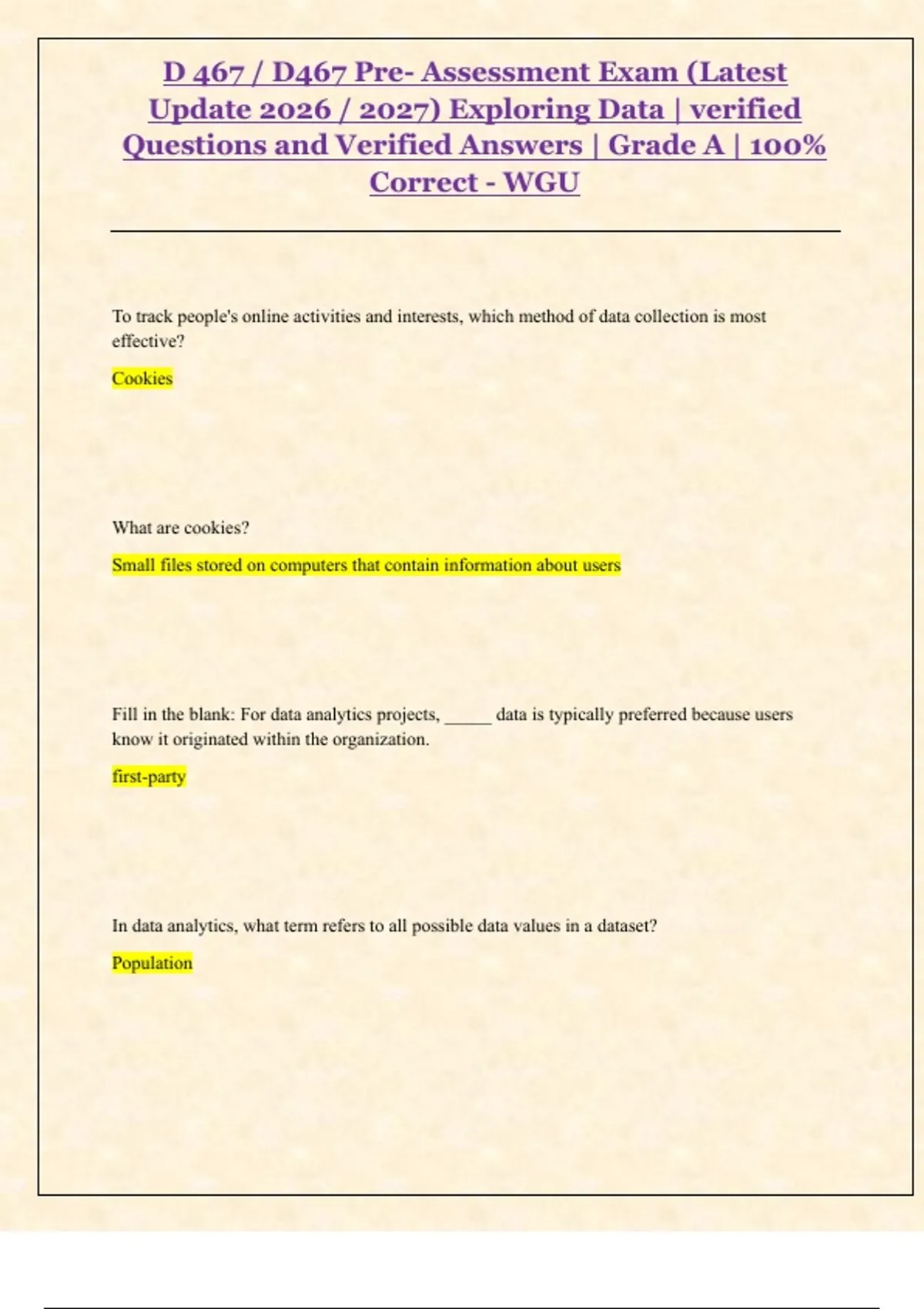 , D 467 / D467 Pre- Assessment Exam (Latest