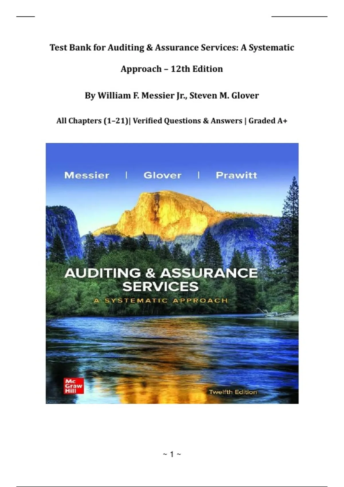 Test Bank for Auditing & Assurance Services: A Systematic Approach – 12th Edition (William F. Messier Jr., Steven M. Glover) | Complete Verified Questions & Answers | Chapters 1–21
