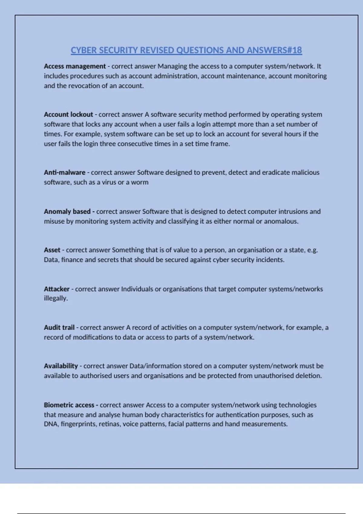 CYBER SECURITY REVISED QUESTIONS AND ANSWERS#18