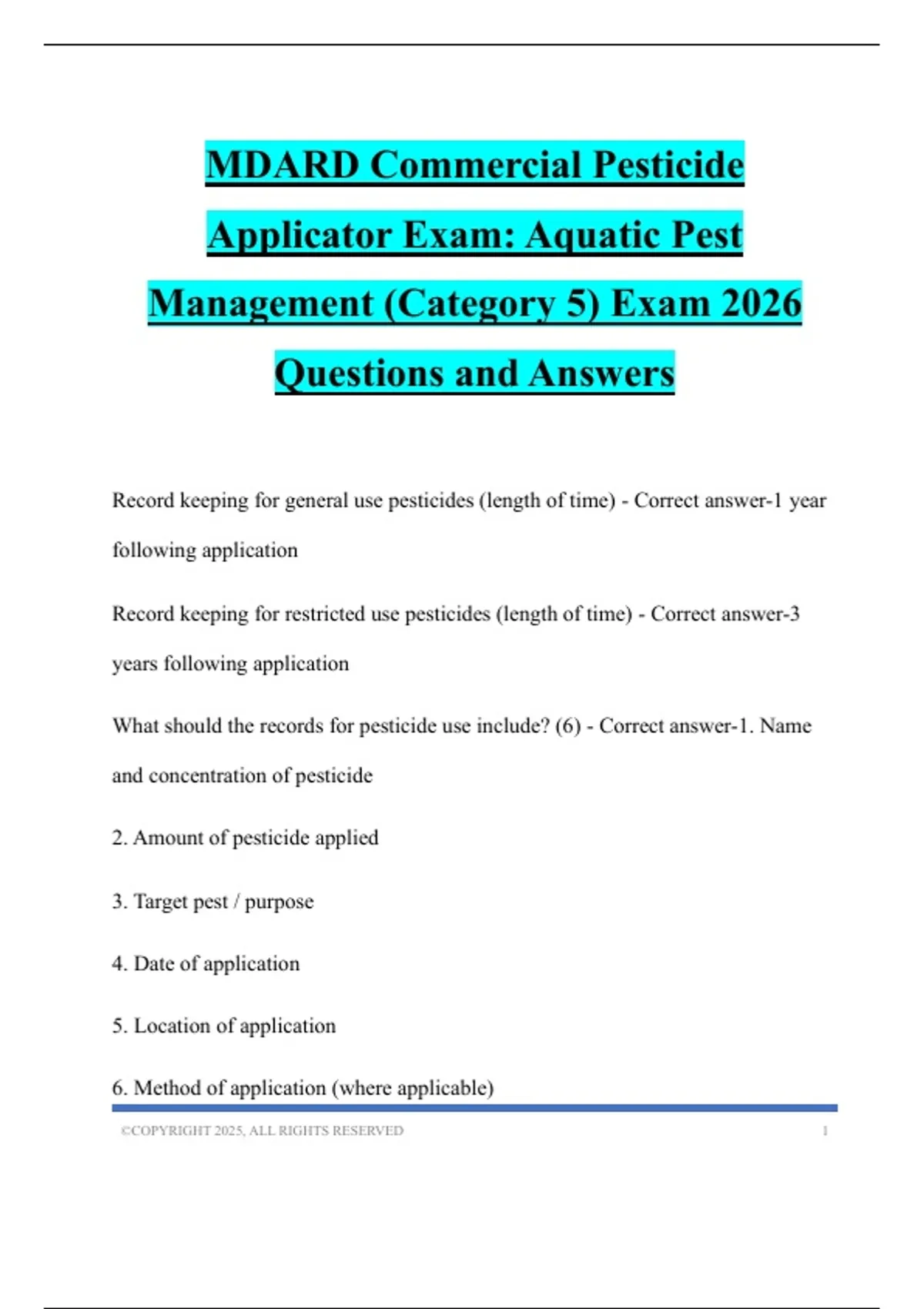 MDARD Commercial Pesticide Applicator Exam: Aquatic Pest Management (Category 5) Exam 2026 Questions and Answers