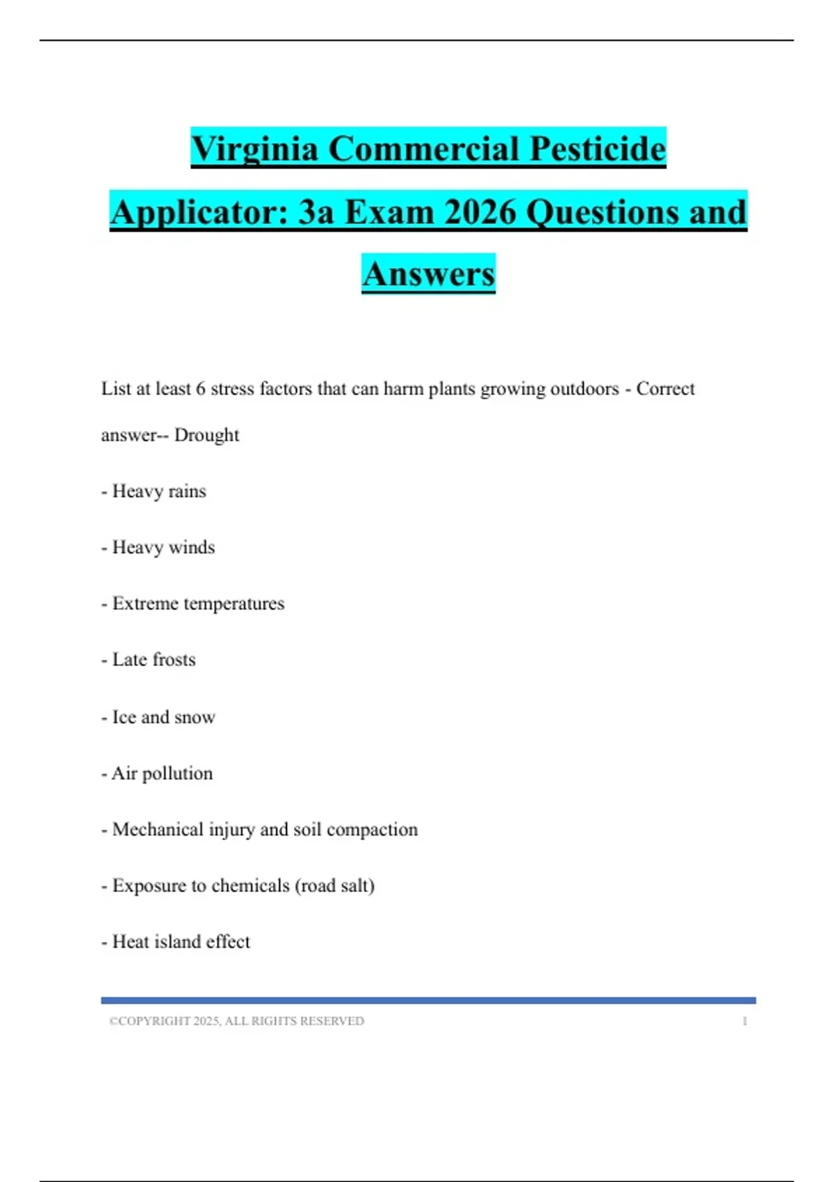 Virginia Commercial Pesticide Applicator: 3a Exam 2026 Questions and Answers