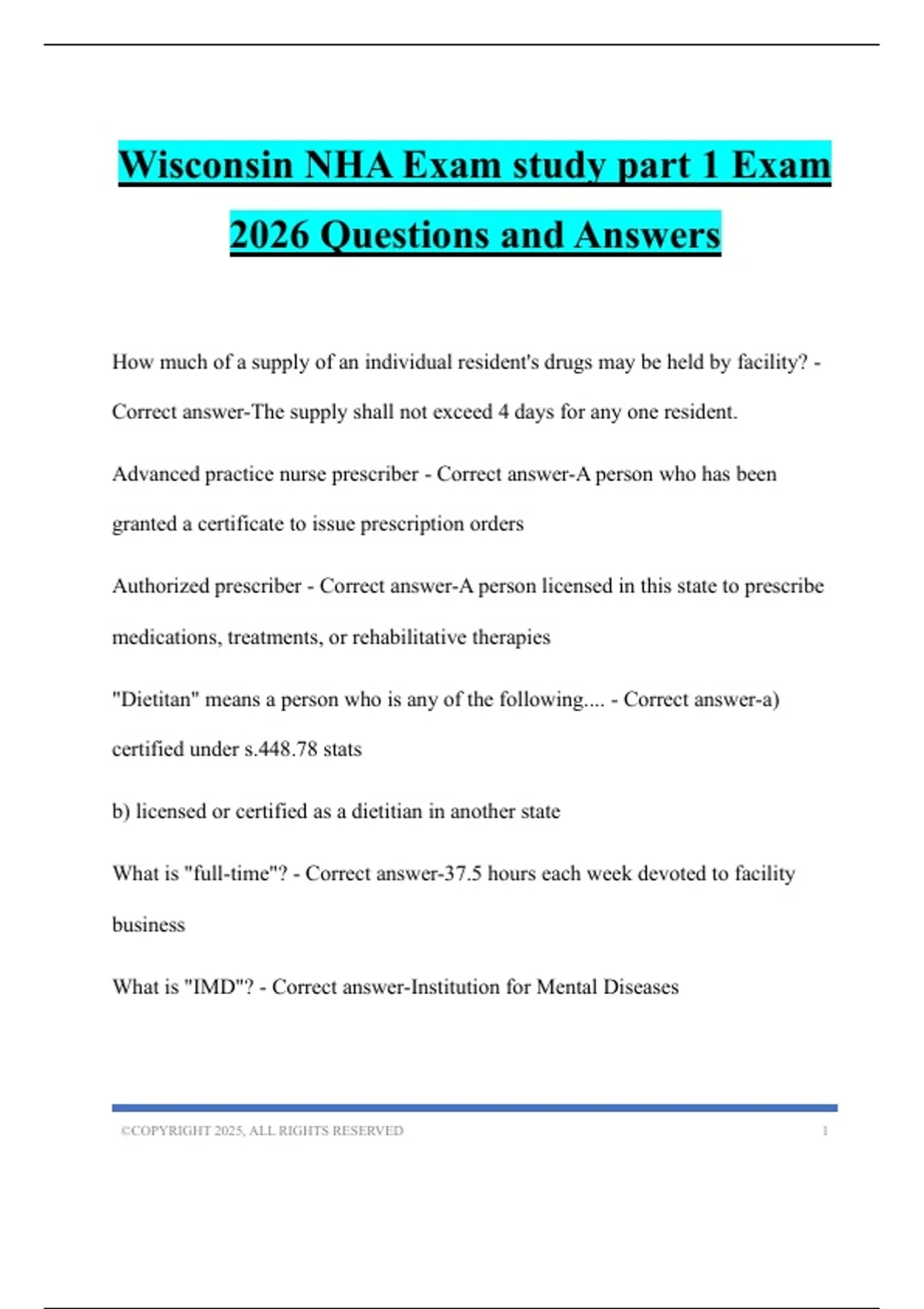 Wisconsin NHA Exam study part 1 Exam 2026 Questions and Answers