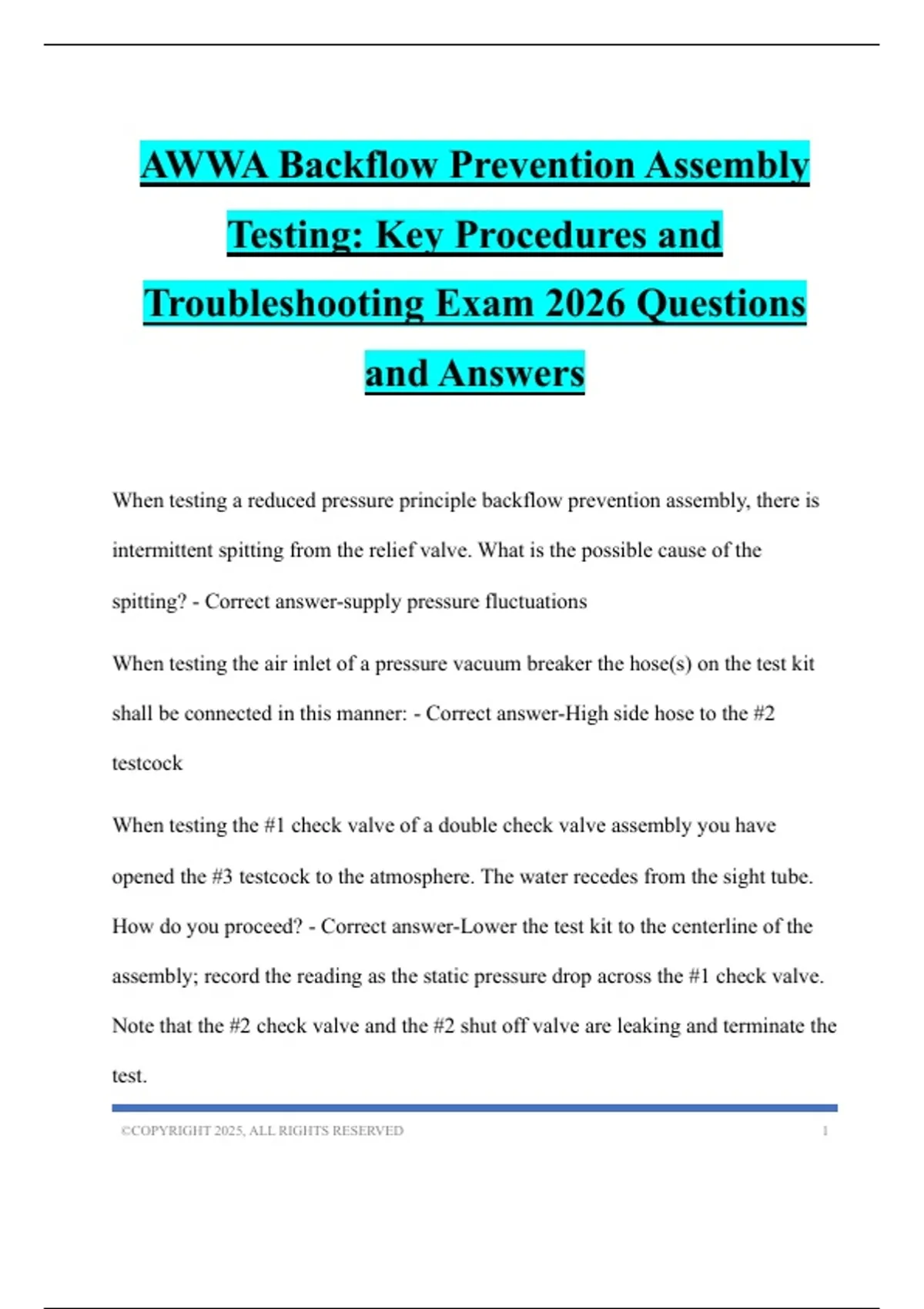 off valve, raise your test kit to the appropriate elevation and close the #1 shut off
