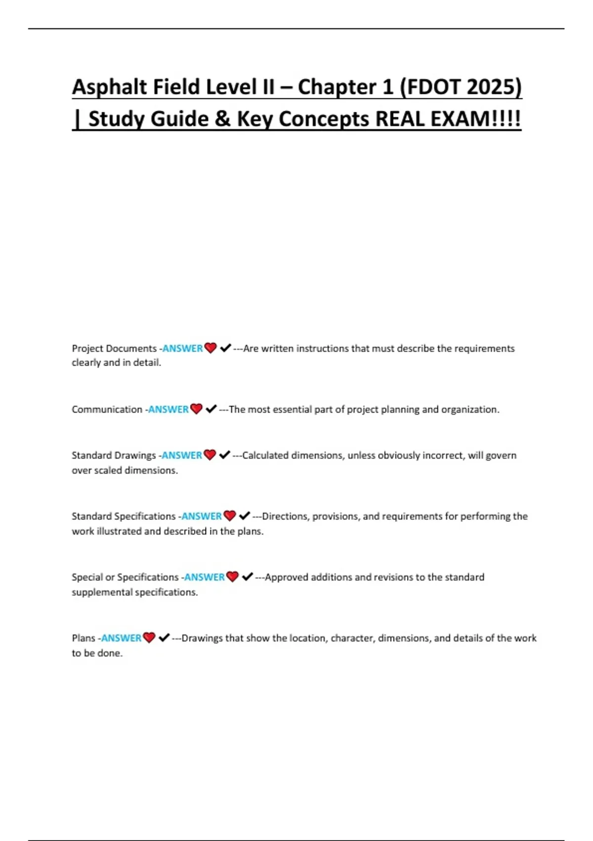Master Chapter 1 of the FDOT Asphalt Field Level II Certification with this 2025 study guide. Includes key concepts, practice questions, and exam-focused insights to help you understand FDOT specifications and prepare effectively for certification.