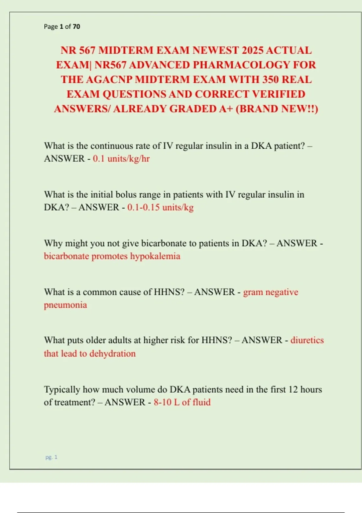 EXAM| NR567 ADVANCED PHARMACOLOGY FOR