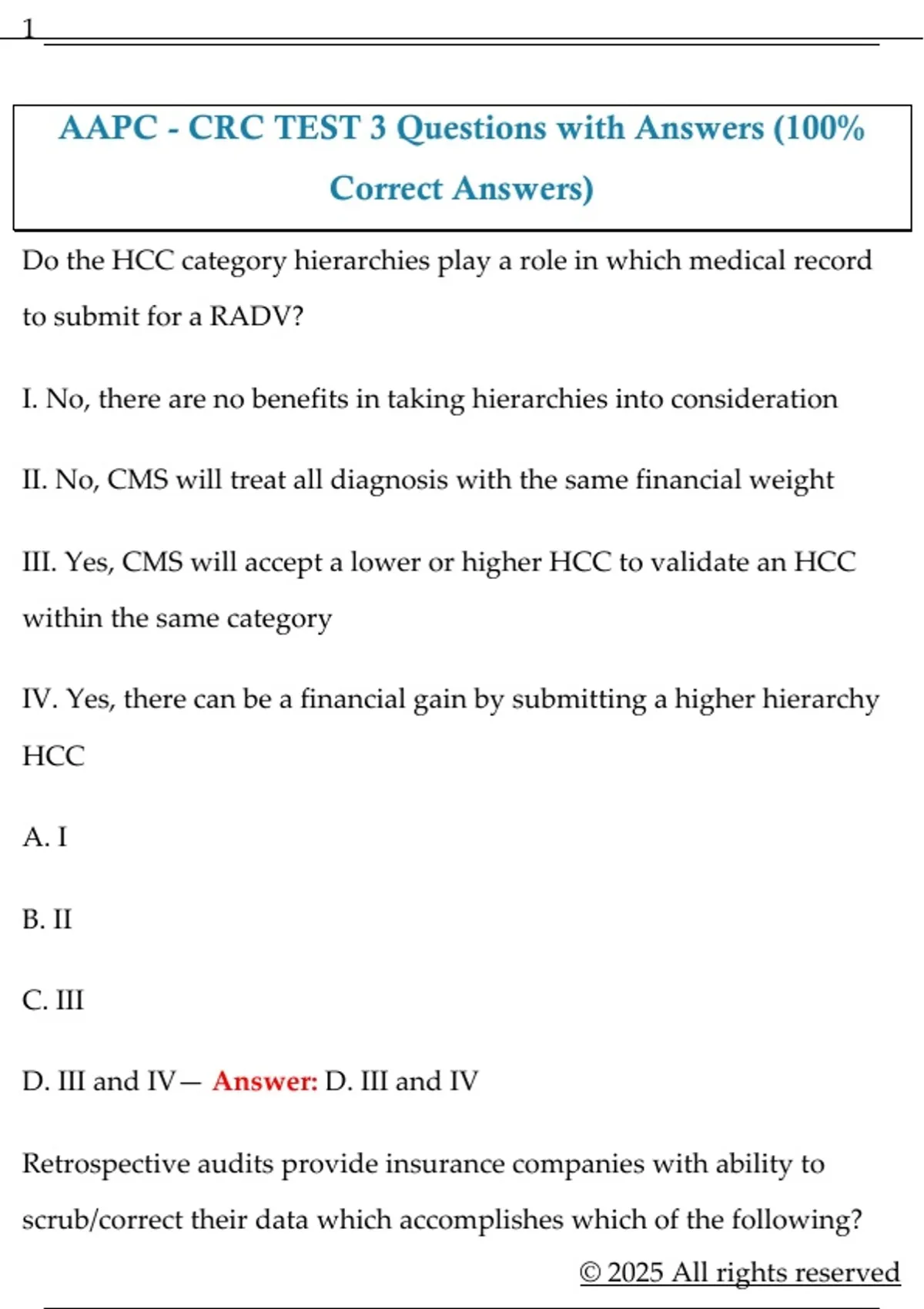 AAPC - CRC TEST 3 Questions with Answers (100%