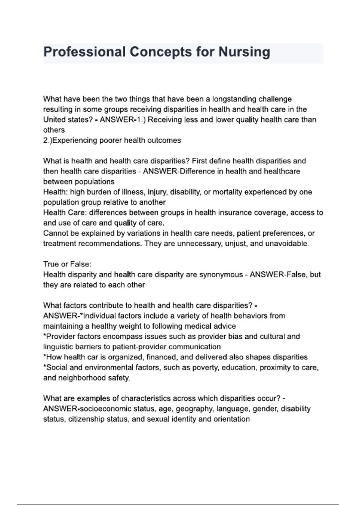 Professional Concepts for Nursing 2025/2026 – Study Guide with Practice Questions, Answers & Detailed Rationales (Nursing Fundamentals Review)