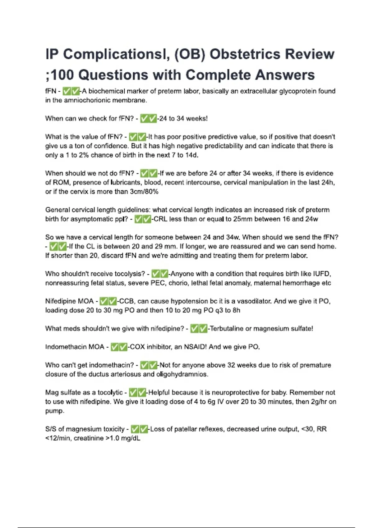 (2025 Updated) OB Intrapartum Complications Review – 100 Verified Questions & Complete Answers | Obstetrics Exam Study Guide (Graded A+)
