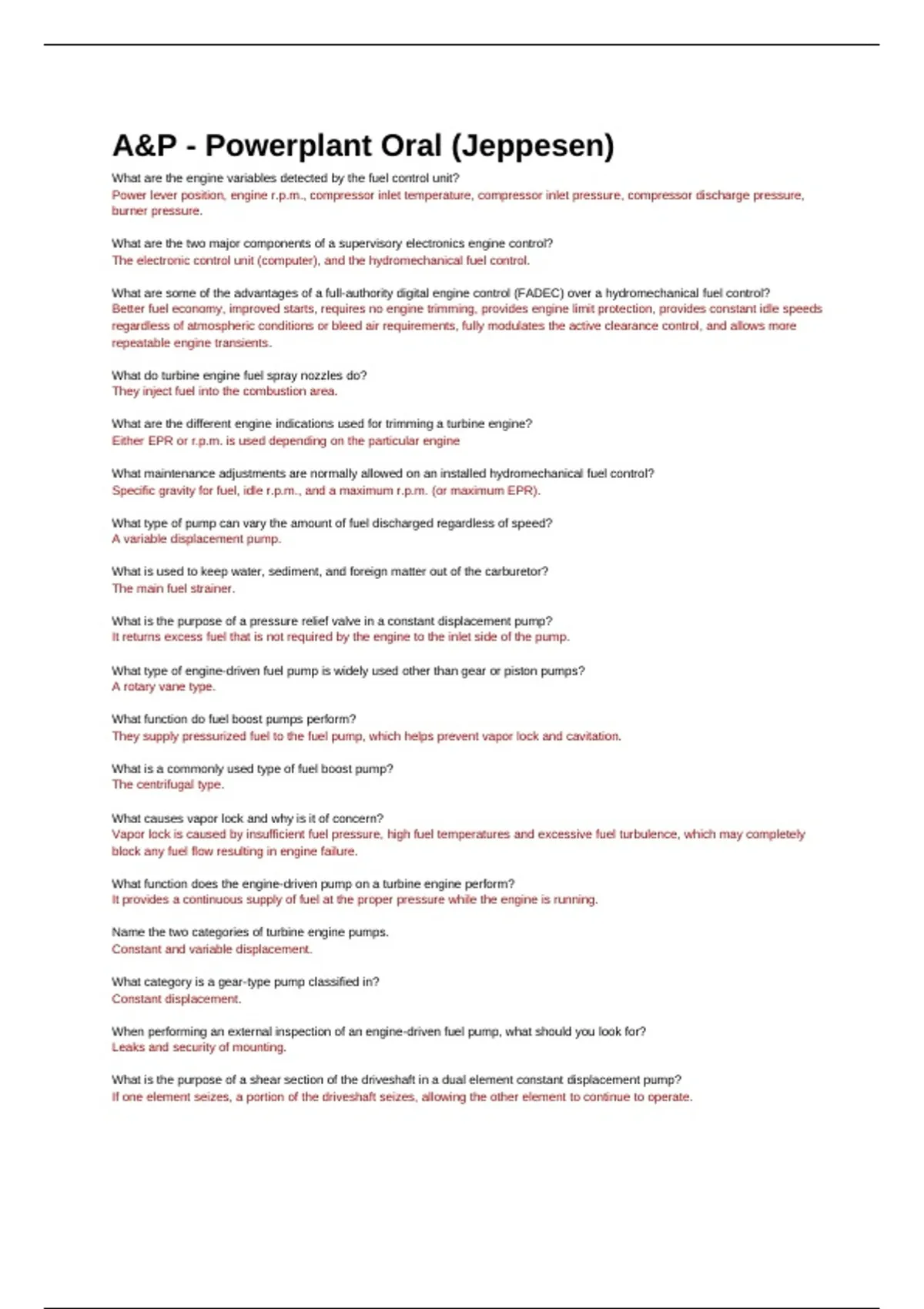 Exam (elaborations) A&P A&P - Powerplant Oral (Jeppesen)