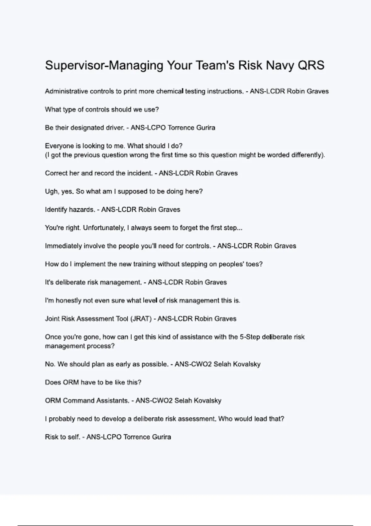 Supervisor – Managing Your Team’s Risk Navy QRS PDF 2025/2026 – Complete Leadership & Risk Management Guide for Naval Personnel