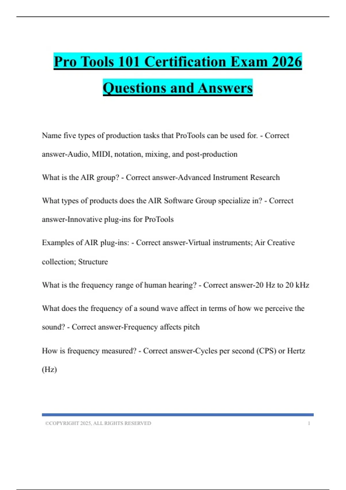 Pro Tools 101 Certification Exam 2026 Questions and Answers