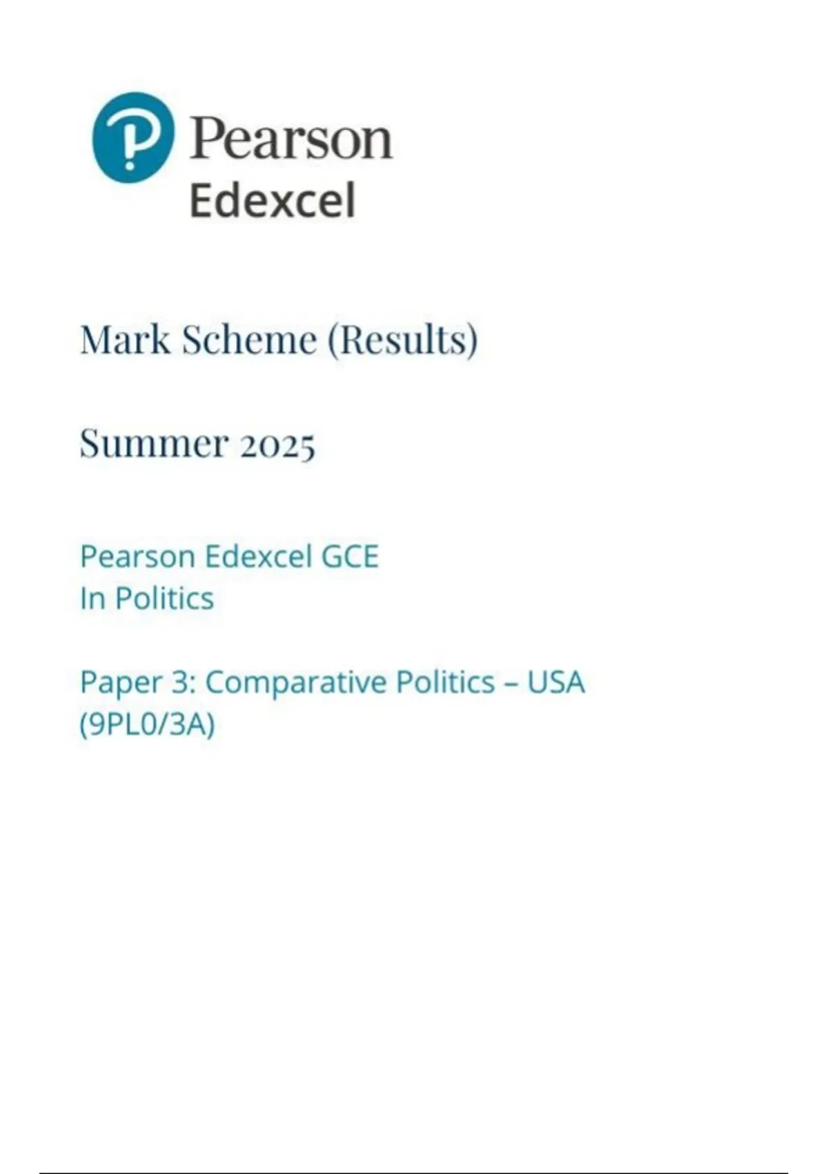 Pearson Edexcel a level Politics |final mark scheme| 2025 |9PL0/3a