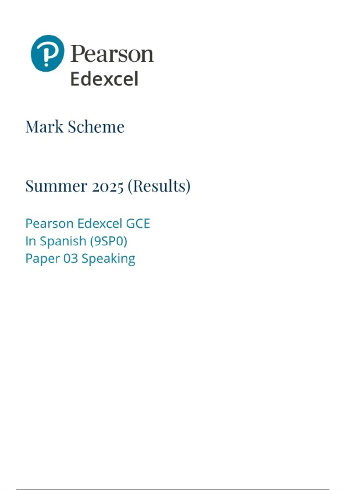 2025 GCE PEARSON EDEXCEL LEVEL 3 SPANISH PAPER 3: SPEAKING MARKING SCHEME